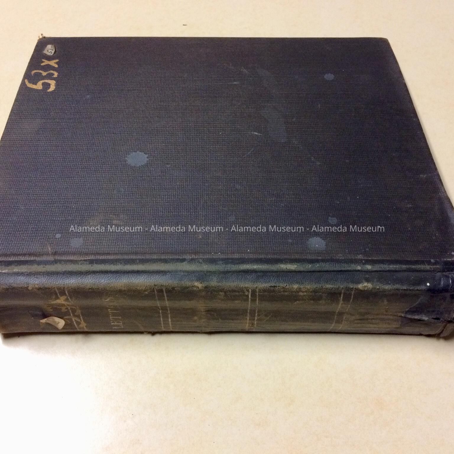 HARD-BOUND VOLUME, WITH COVER OF BLACK-COLORED BUCKRAM. SPINE HAS INCISED GOLD CAPTION, STATING, "LETTERS."