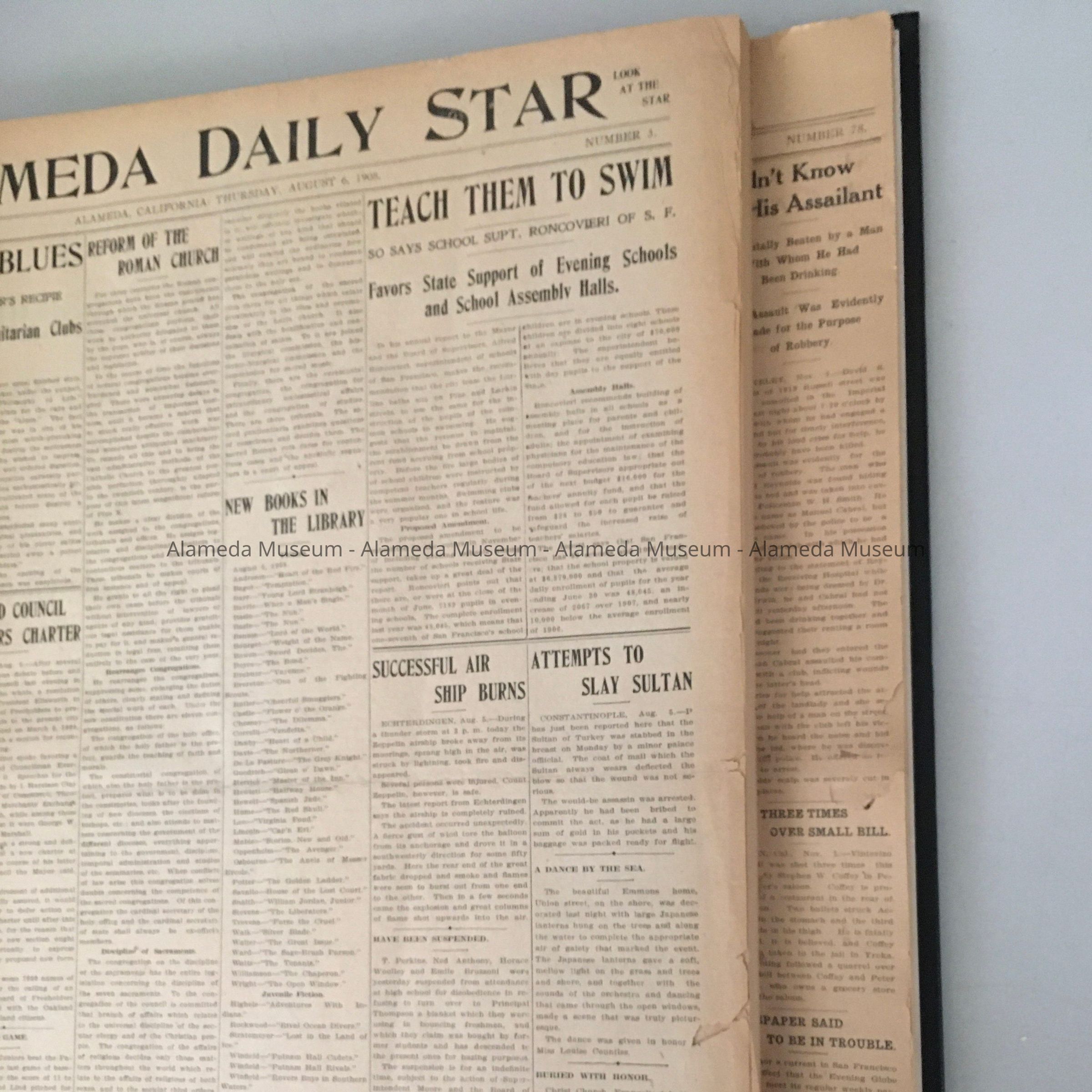 History of Object: Alameda Daily Star, 1908 (Aug-Dec) - Vol. 1.