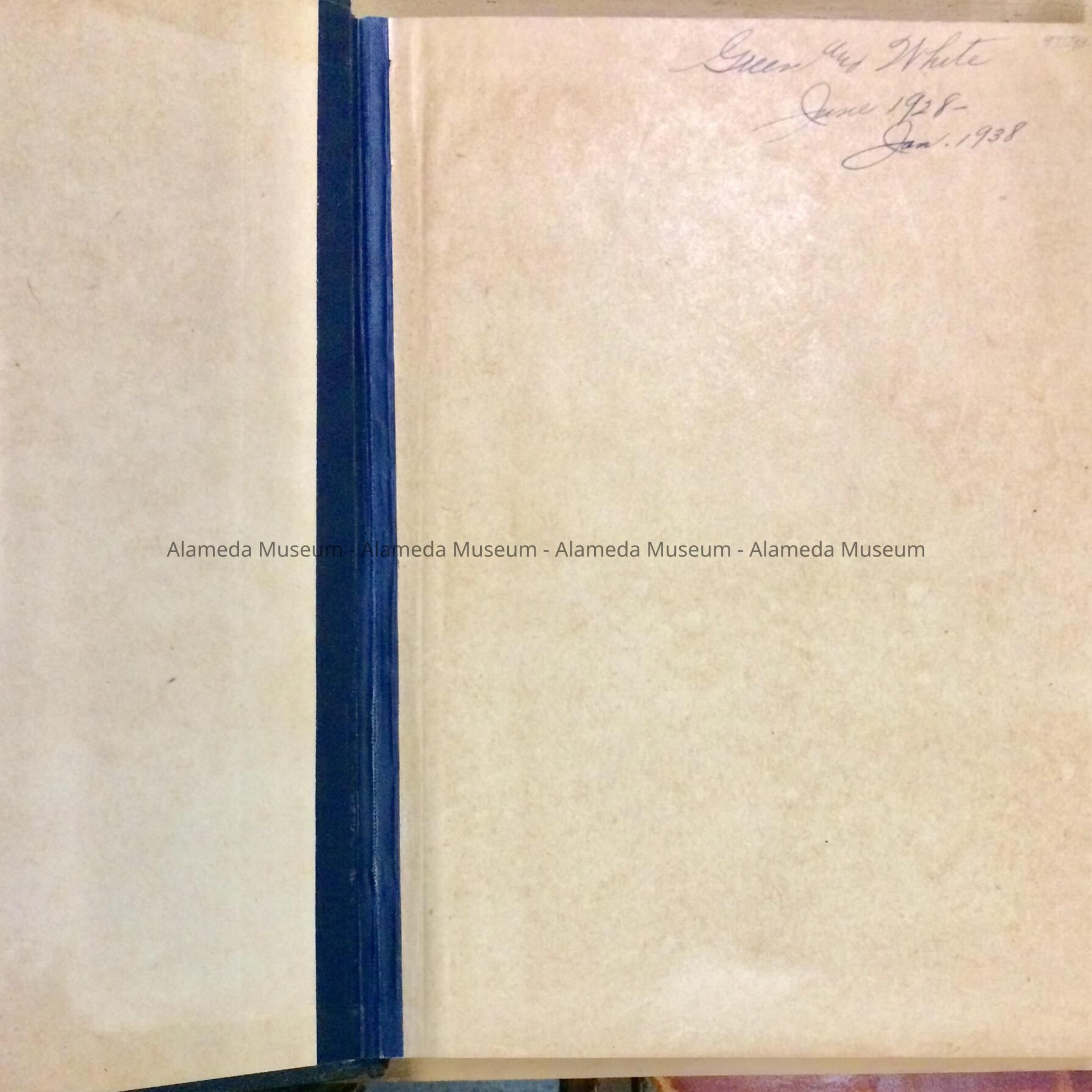 EDITIONS OF THE WASHINGTON SCHOOL NEWSPAPER, BOUND IN BOOK FORM, GREEN-AND-WHITE COLORS, FROM JUNE 1928 TO JANUARY 1938. THIS PUBLICATION WAS A SCHOOL NEWSPAPER WHICH INCLUDED LISTINGS OF EVENTS, GRADUATES, ETC. THE VOLUME WAS PRESENTED TO THE ALAMEDA HISTORICAL SOCIETY PRIOR TO 1971 AND HERETOFORE NOT OFFICIALLY CATALOGED.