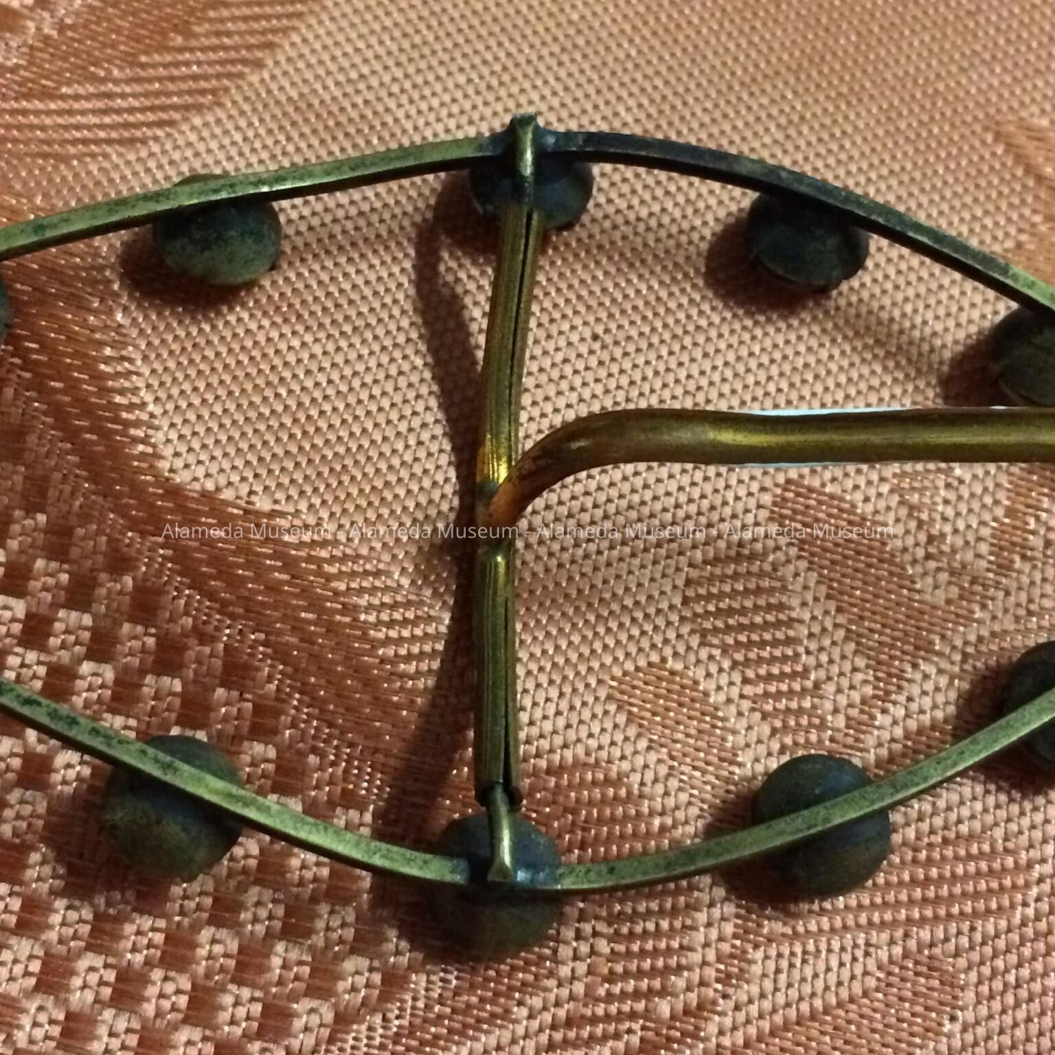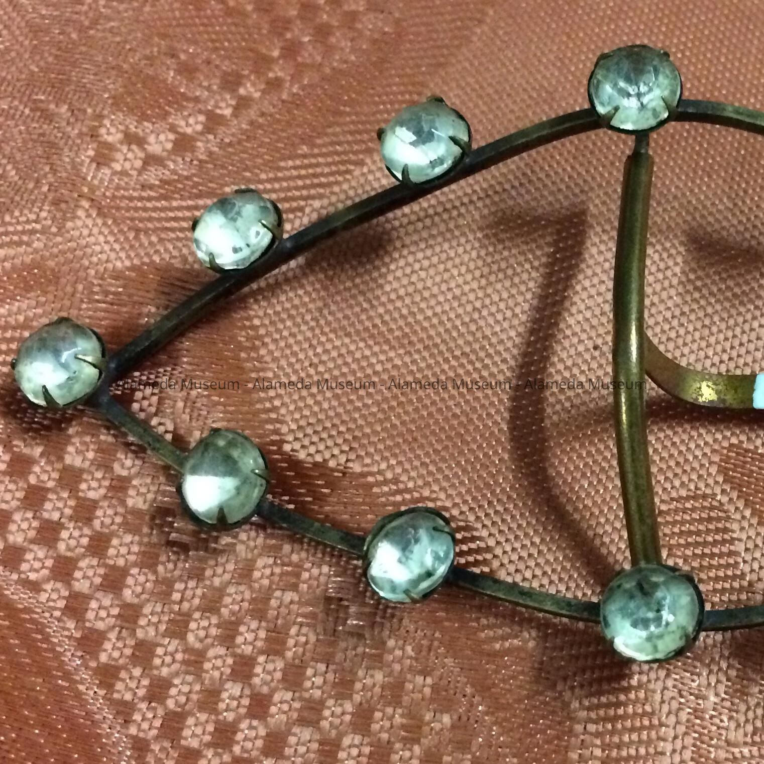 History of Object: Brass buckle studded with rhinestones that belonged to an unidentified female member of the Thomas family, 1405 Caroline St., Alameda. They were old-time residents of the community.