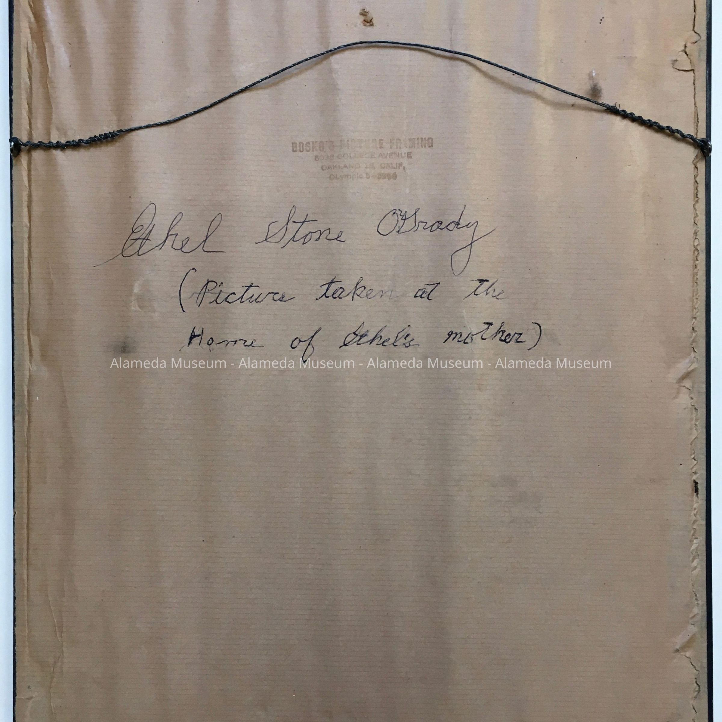 History of Object: A bridal photo of Ethel Stone O'Grady, daughter of William Frank Stone, who died in 1923. He was the son of William Isaac Stone, who founded the Stone Boat Yard. Ethel Stone O'Grady was the mother of the donor, Roberta O'Grady. This wedding portrait was taken at the home of Ethel's mother, Emma, at 1813 Portola Avenue, Alameda.