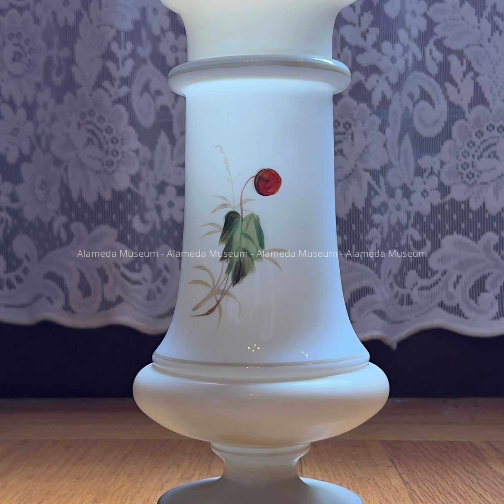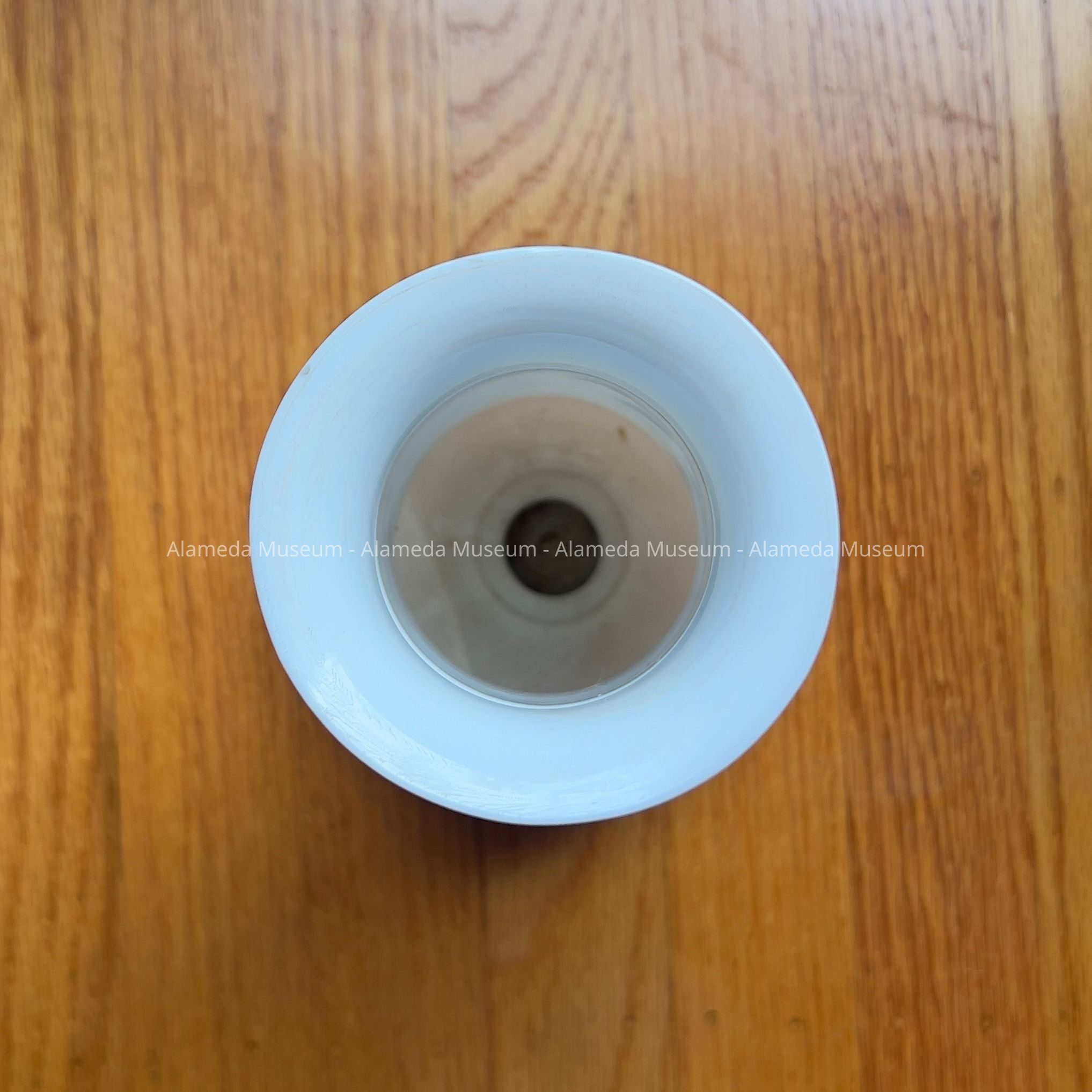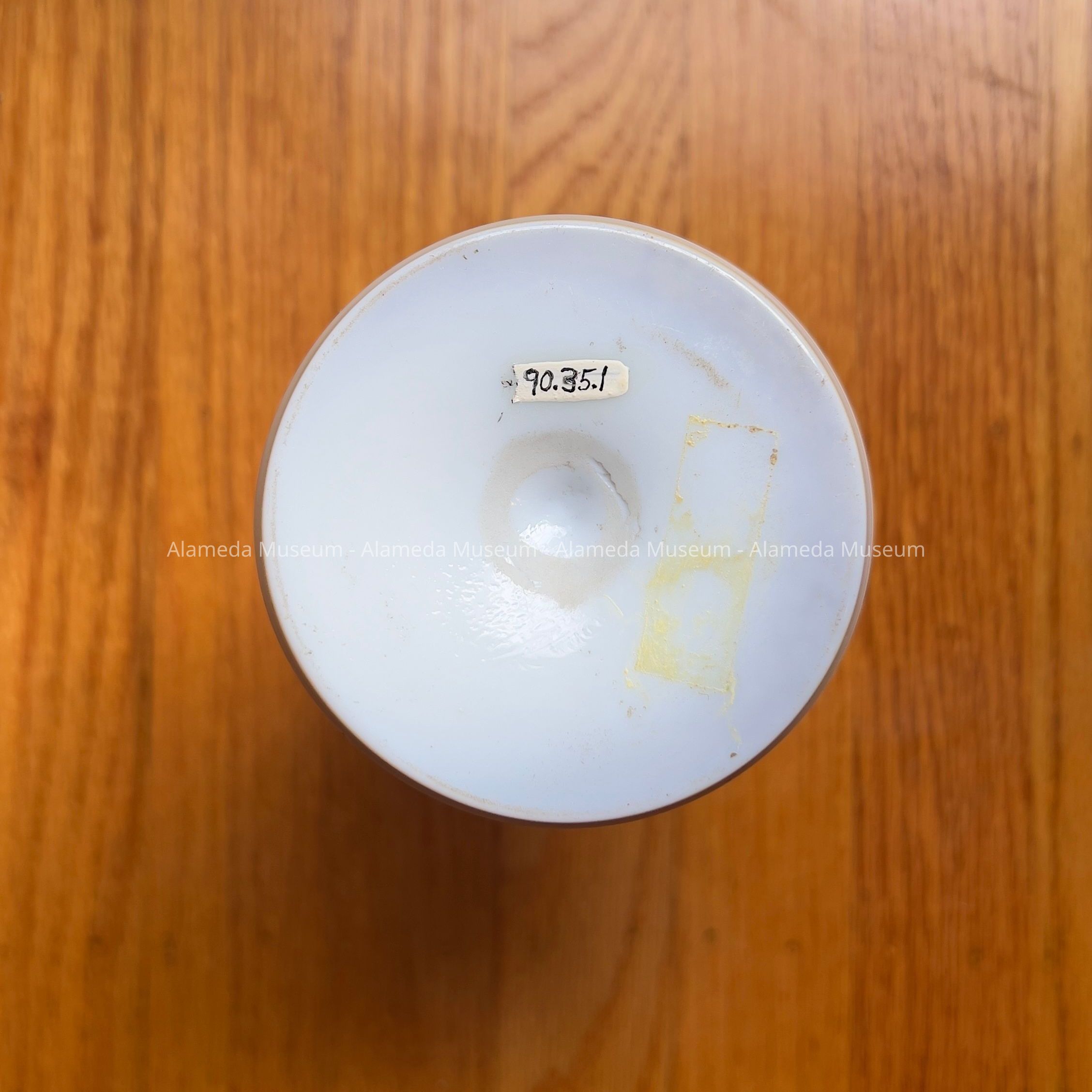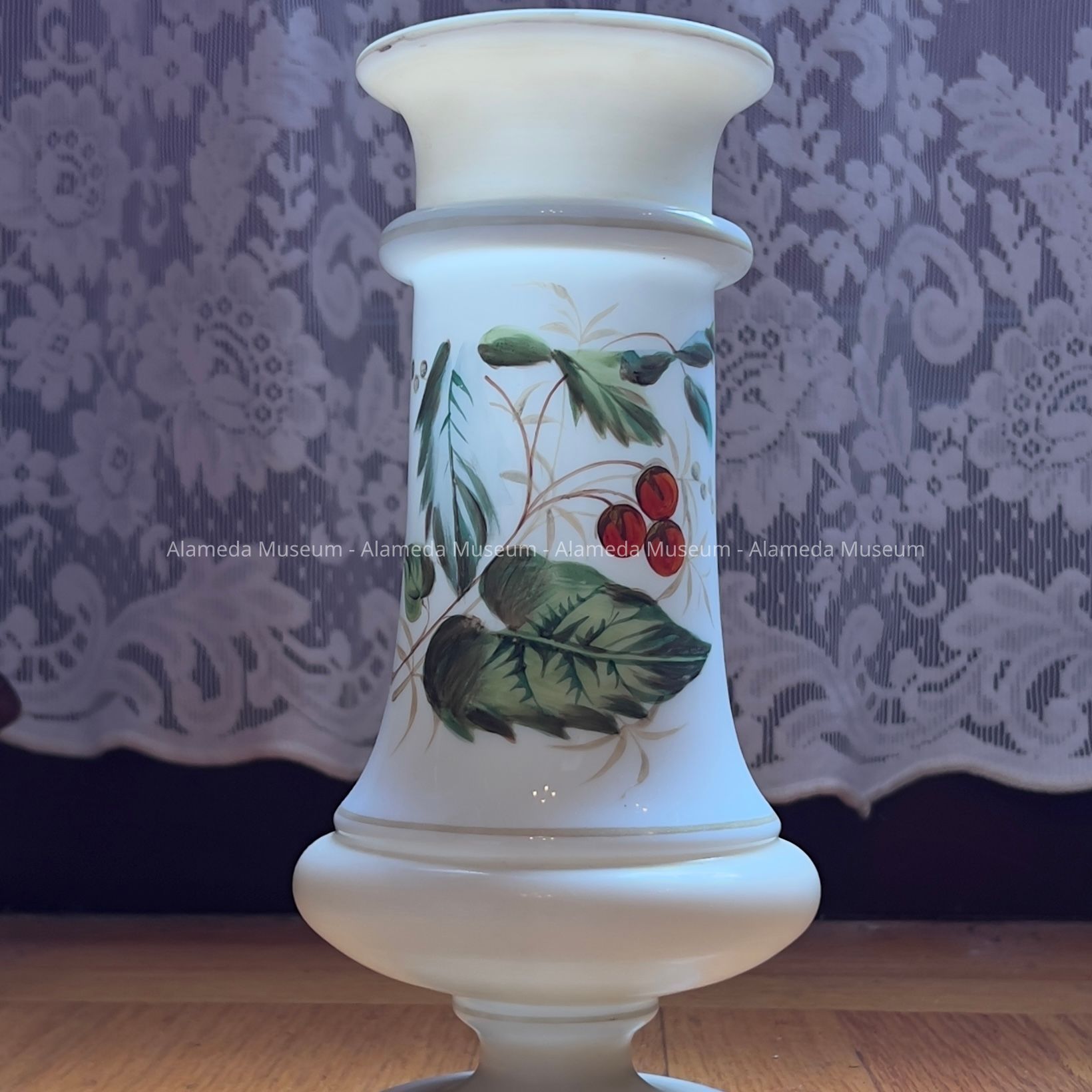 History of Object: Vase that belonged to Miss. Ida Kelsey. With her brother, she lived in the Dunning house at 2619 Santa Clara Avenue. She was the sister of Mrs. Eli B. Dunning, wife of the Park Street paint merchant. The vase possibly originally belonged to Mrs. Dunning, as her sister (Ida) had inherited the house (2619 Santa Clara Avenue) and its contents upon her death.