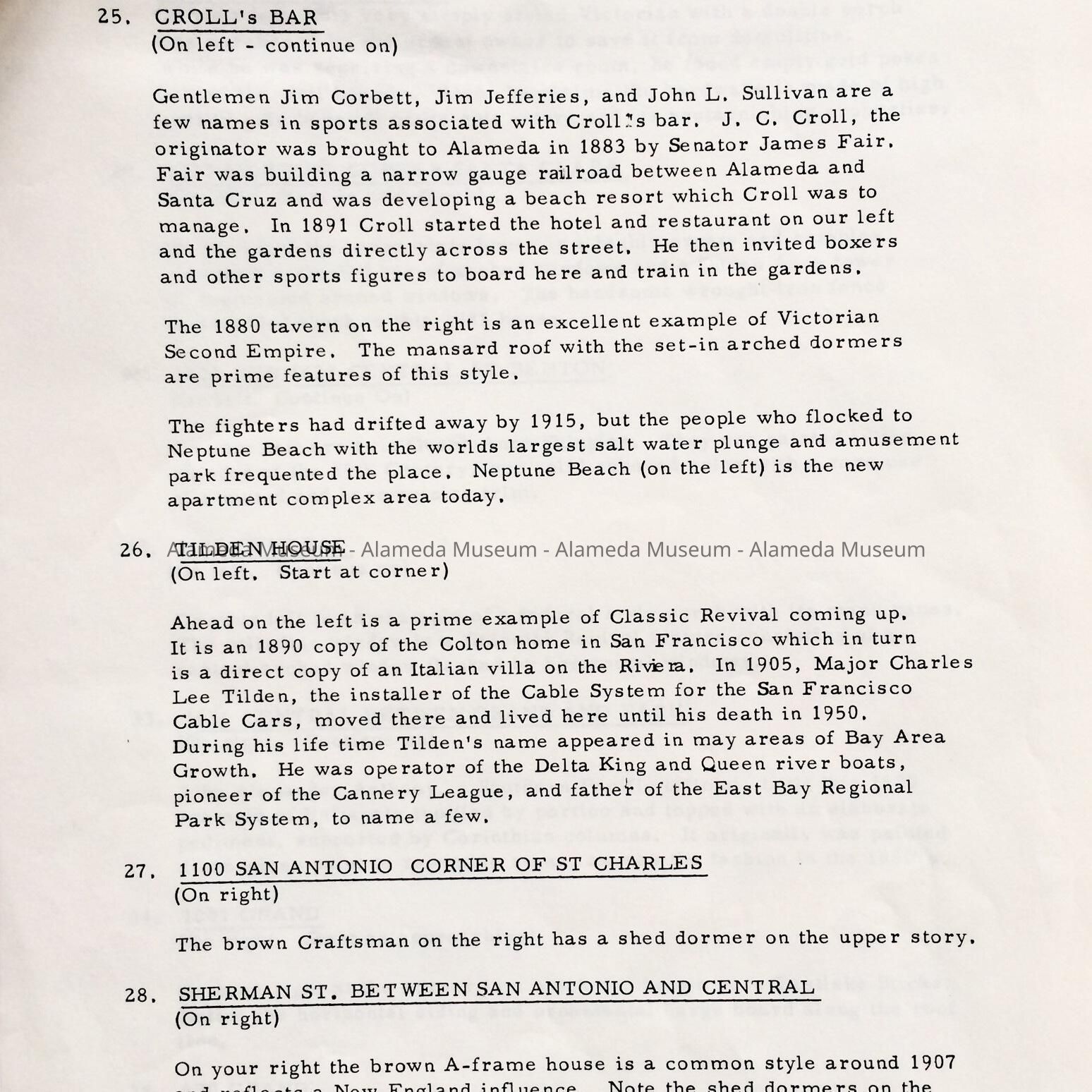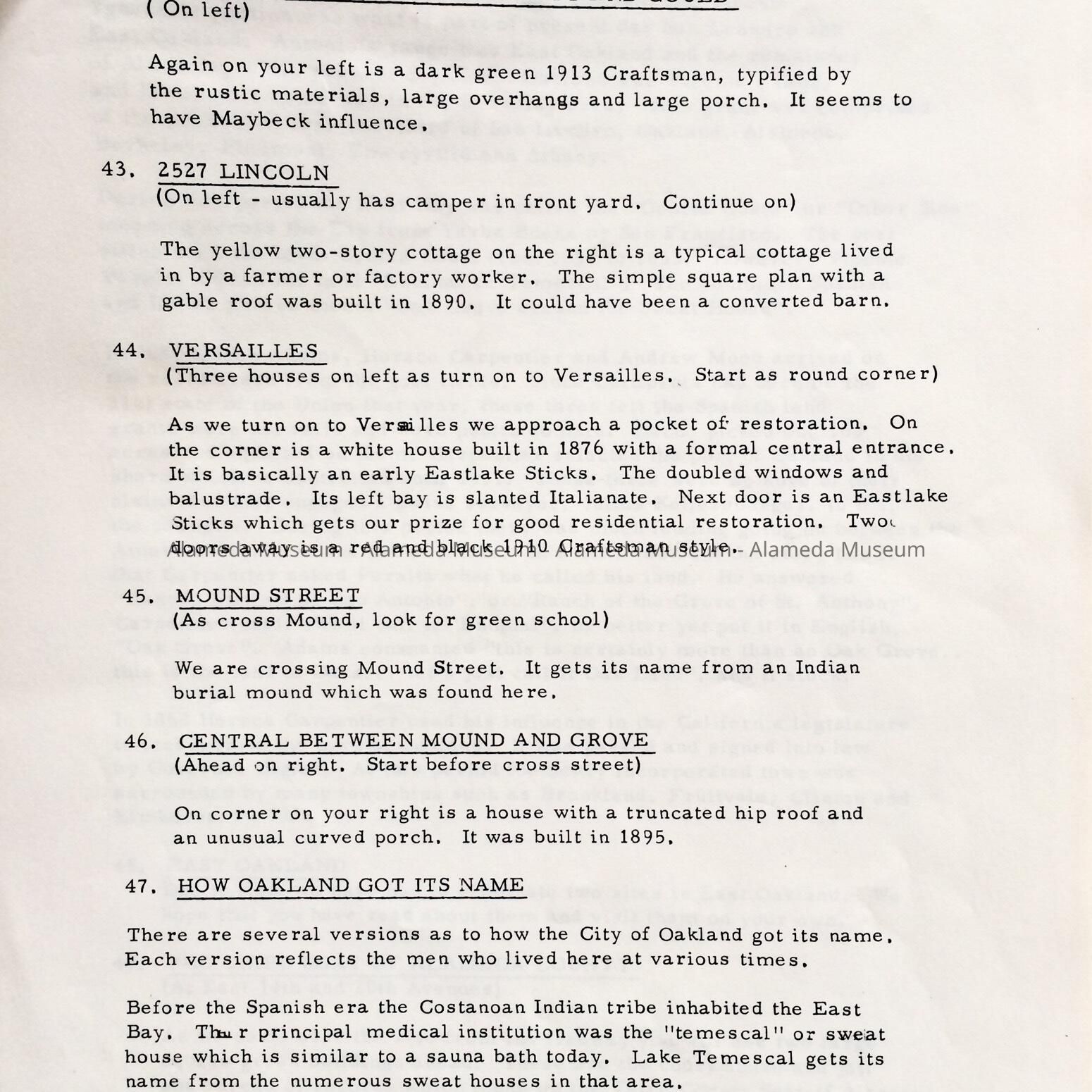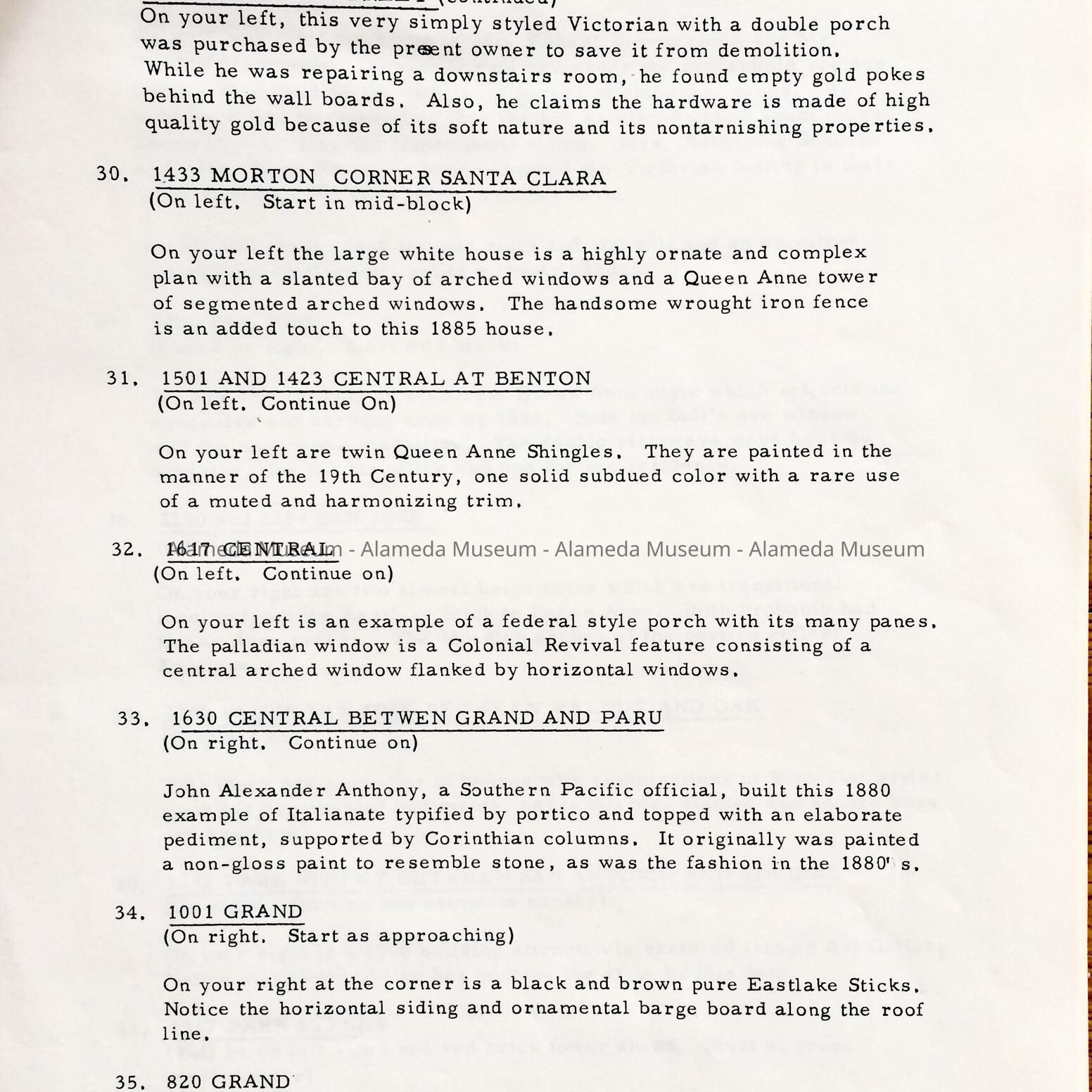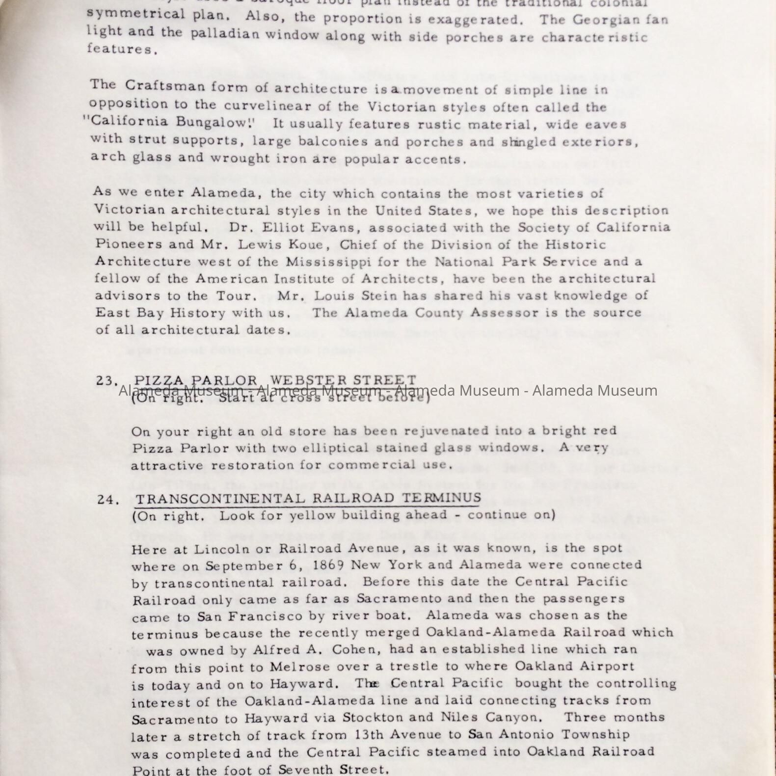 History: Historic and Architectural Tour of Alameda County through the Junior League of Oakland. Page 8 through page 12 has descriptions and histories of Alameda Victorian Homes. Published June 25, 1971.