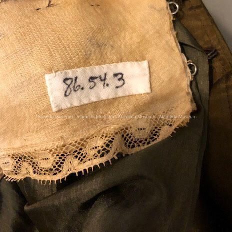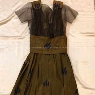 History of Object: Dress worn by Roberta, or her sister, Doris, daughters of Mr. & Mrs. Samuel M. Haslett, old-time residents of Alameda. Both daughters were born in Alameda.