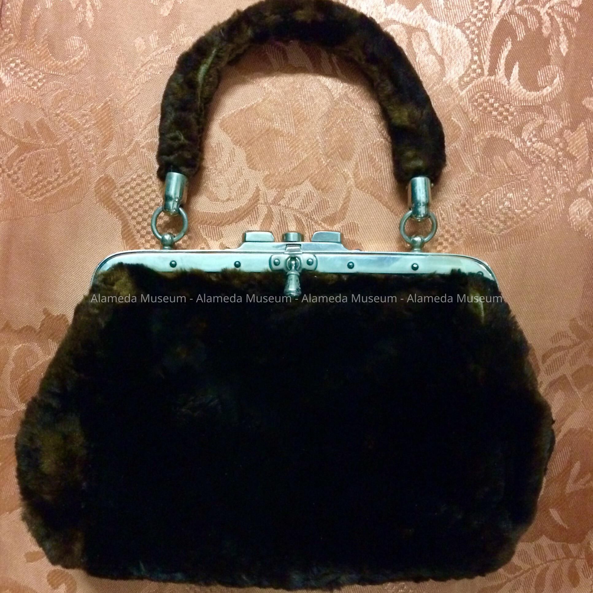 Brown beaver purse c Matching handle, Nickel ploded Brass Frame + Clasp. Purse from Carol Hesche collection.