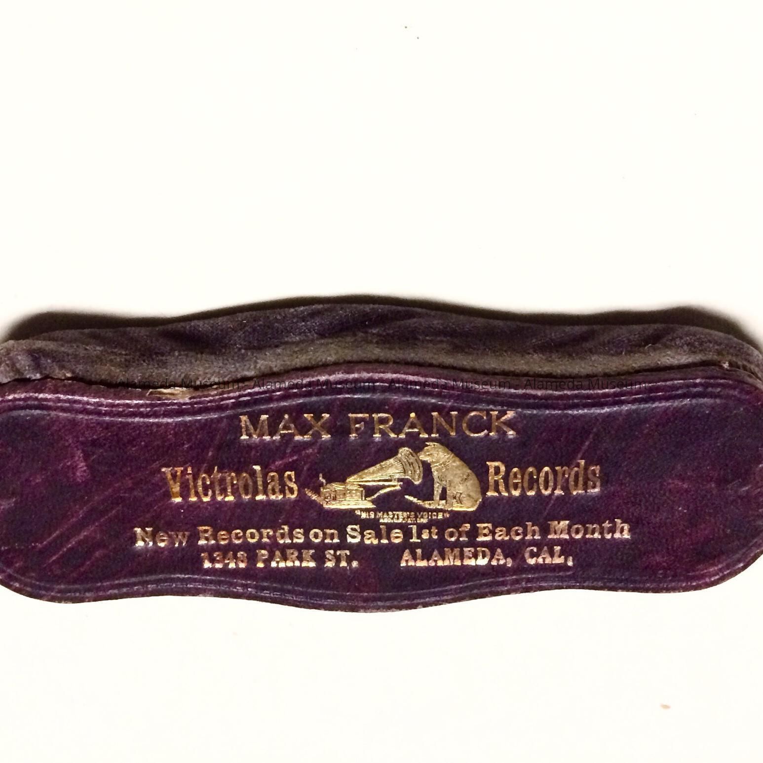 HISTORY OF OBJECT: A BRUSH USED FOR CLEANING PHONOGRAPH RECORDS ISSUED BY MAX FRANCK, PROPRIETOR, MUSIC STORE, 1348 PARK STREET, ALAMEDA.