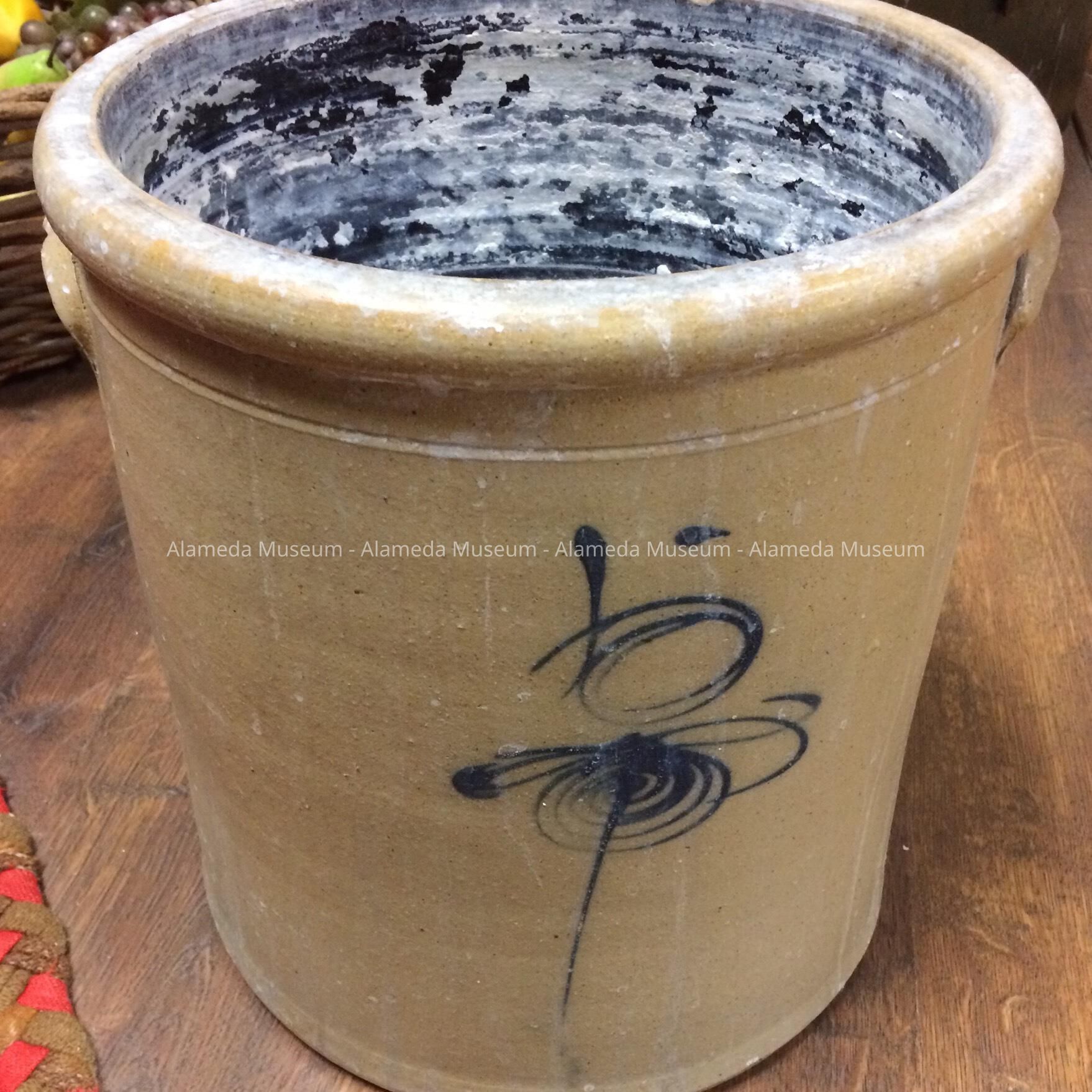 History of Object: Crock that was used for the storage of eggs in the basement of the H. H. Meyers family residence, 2021 Alameda Avenue.