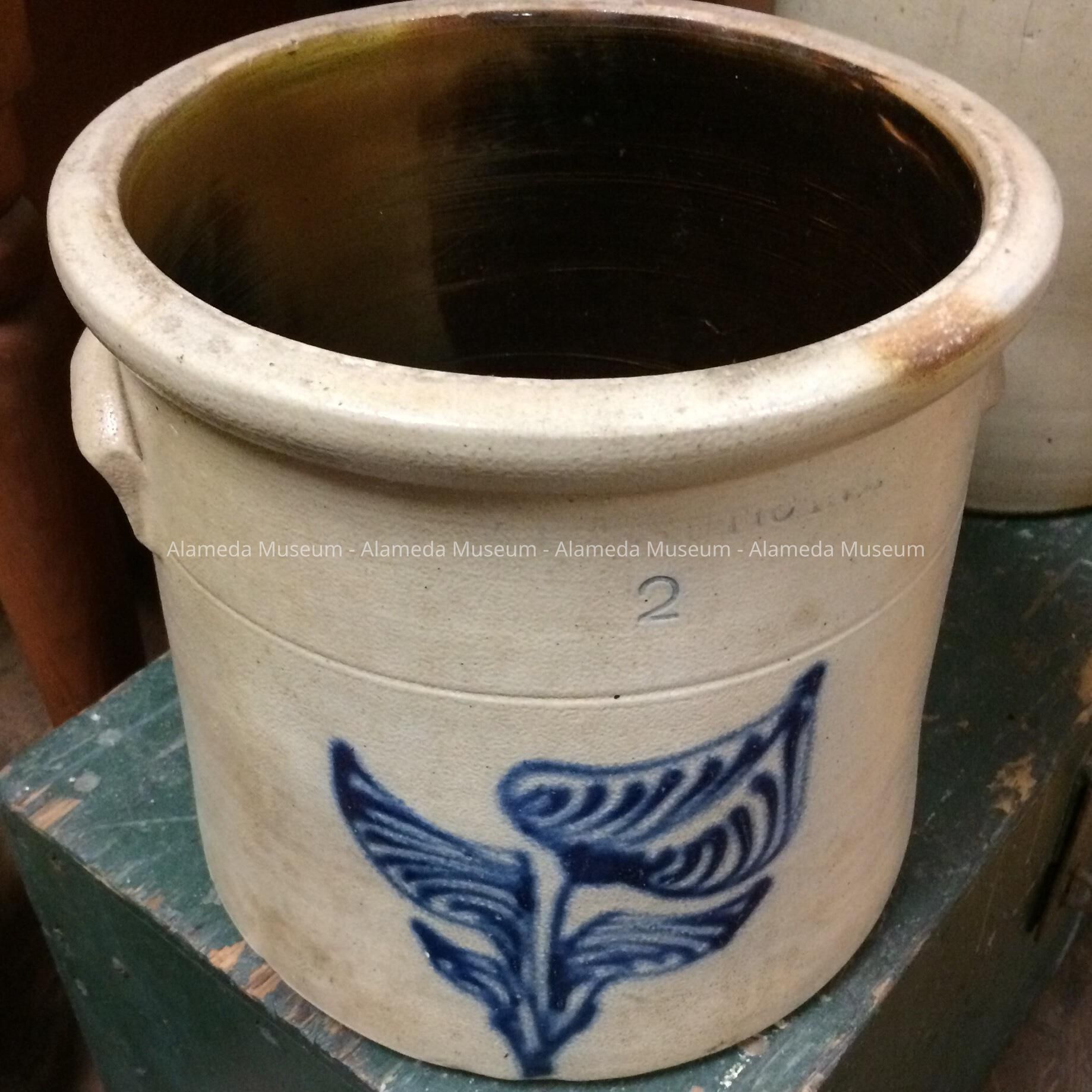 Crock that was used for the storage of eggs in the basement of the H. H. Meyers family residence, 2021 Alameda Avenue.