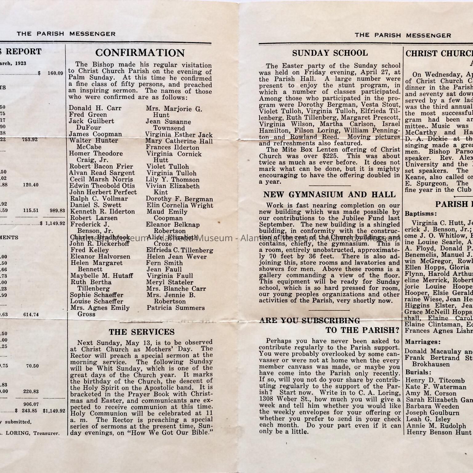Bulletin 'The Parish Messenger', Christ Episcopal Church, 1923Entry/Object ID