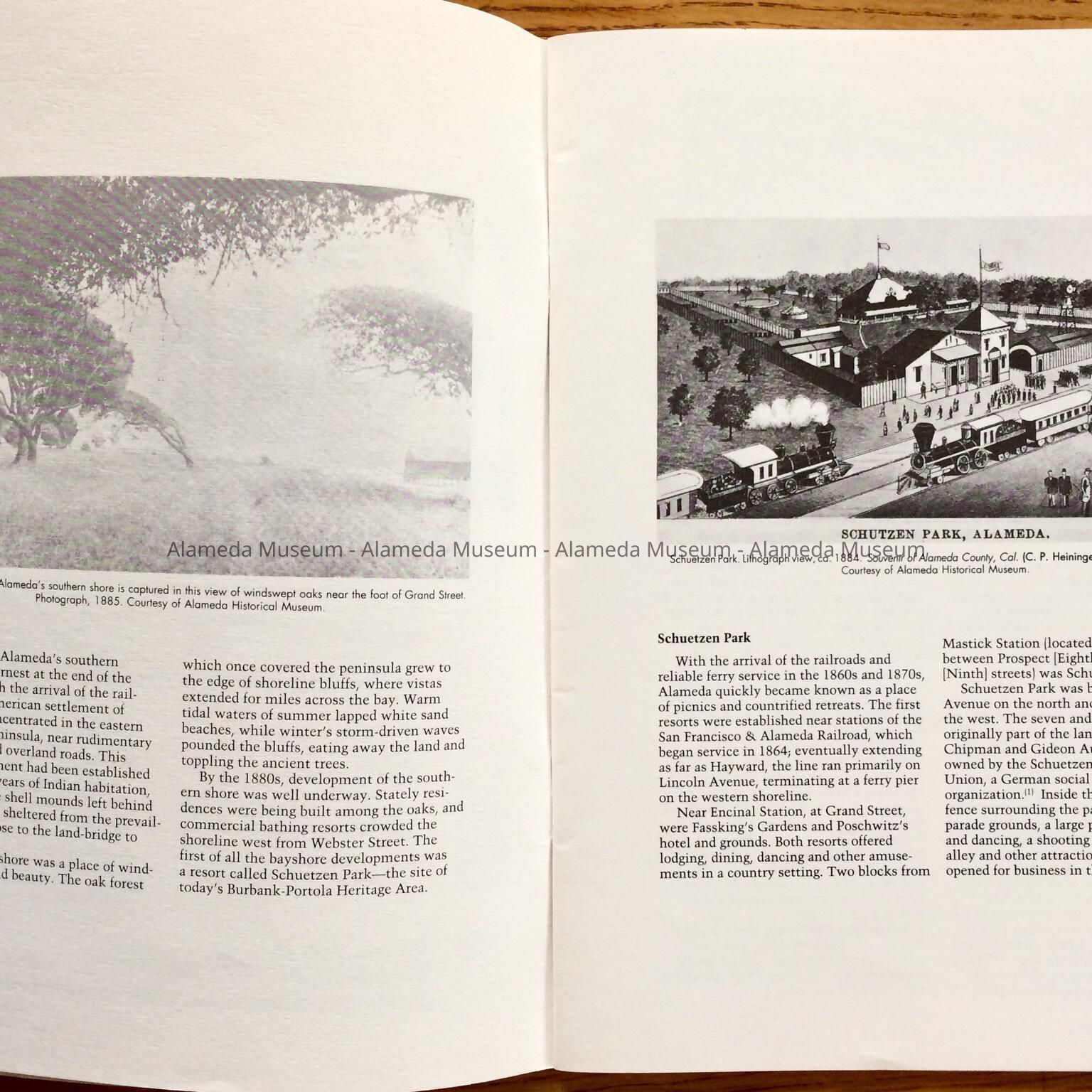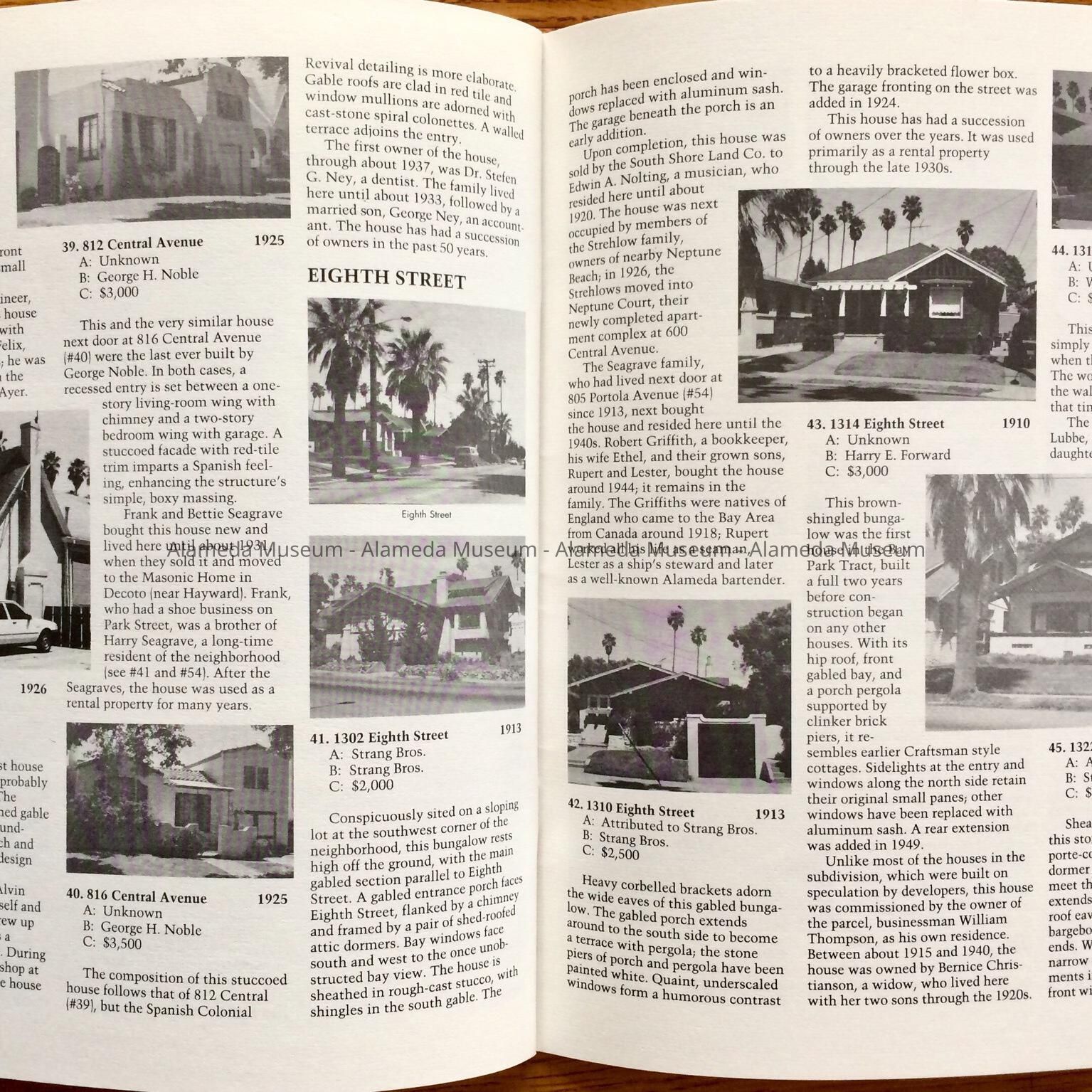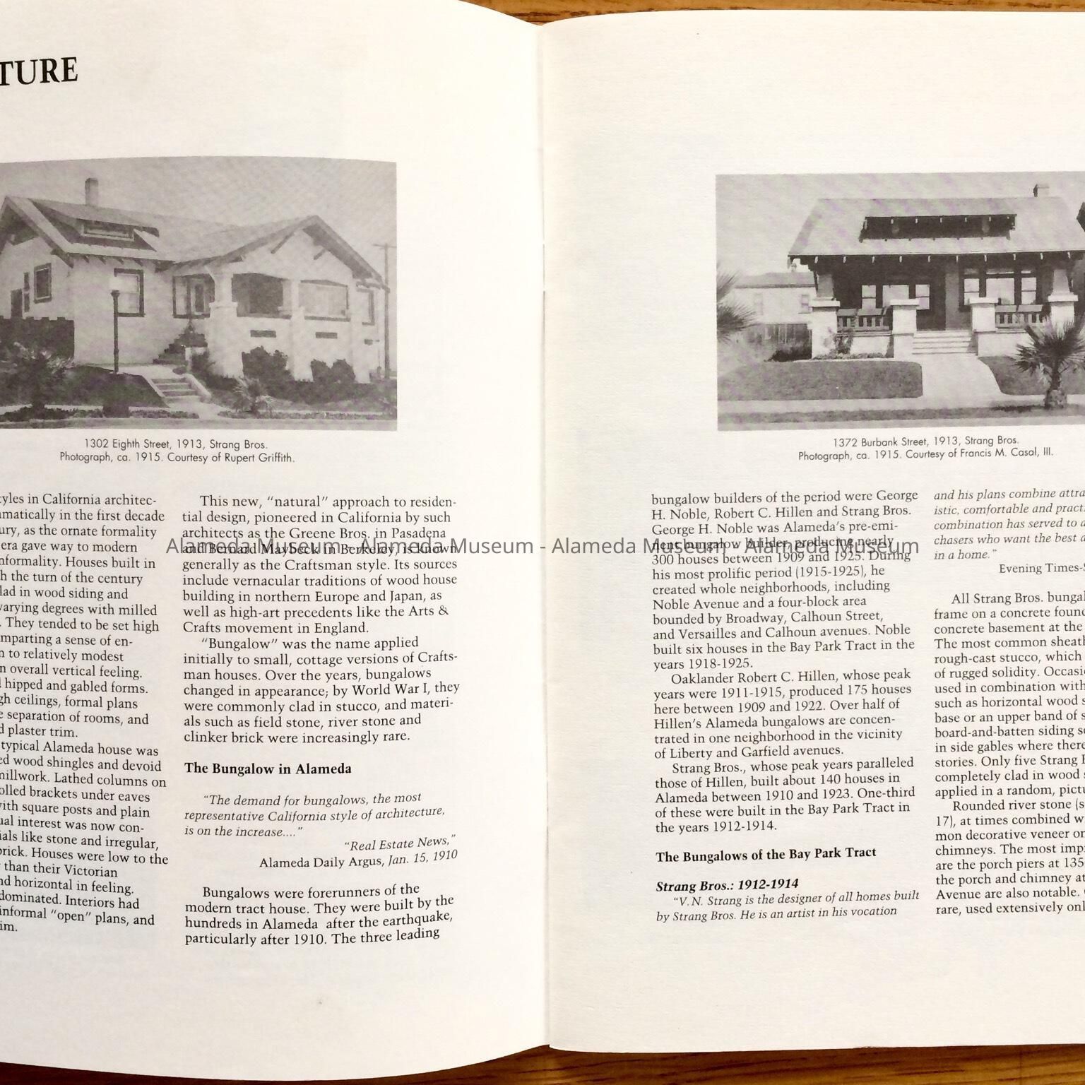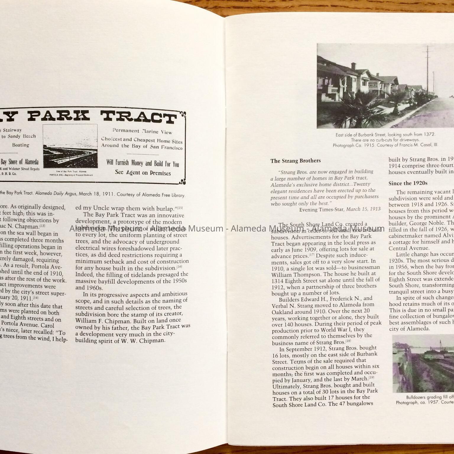 History of Object: Illustrated history of Eighth and Broadway Streets and Portola Avenue. The publication also includes photographs of individual houses with a description and history. The publication was written by Woody Minor under the auspices of the City of Alameda Historical Advisory Board.