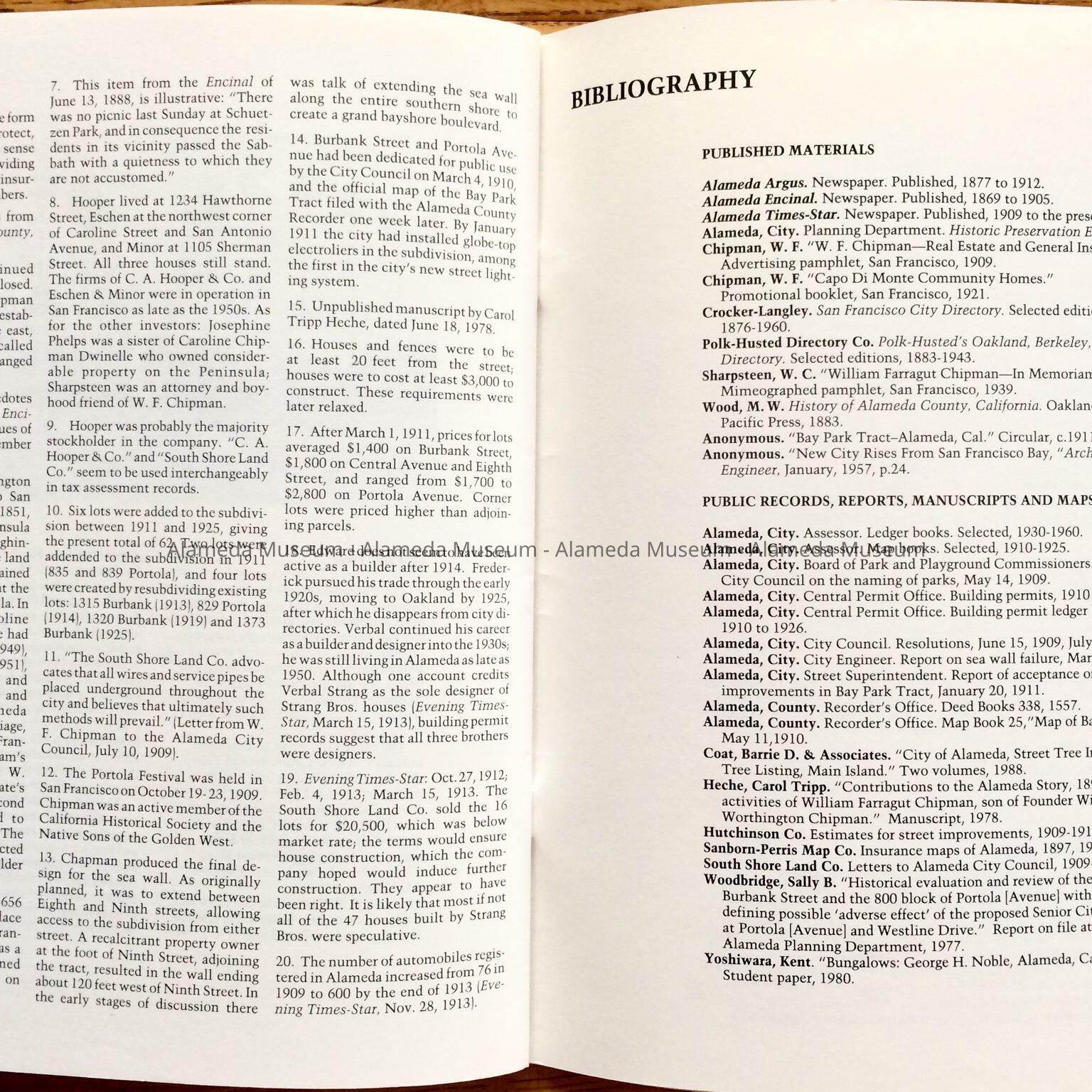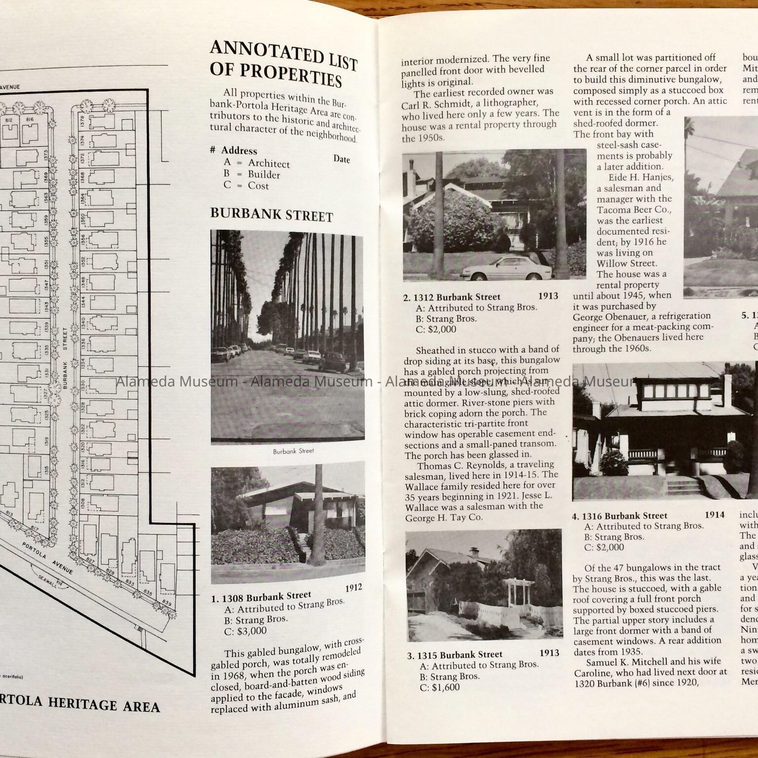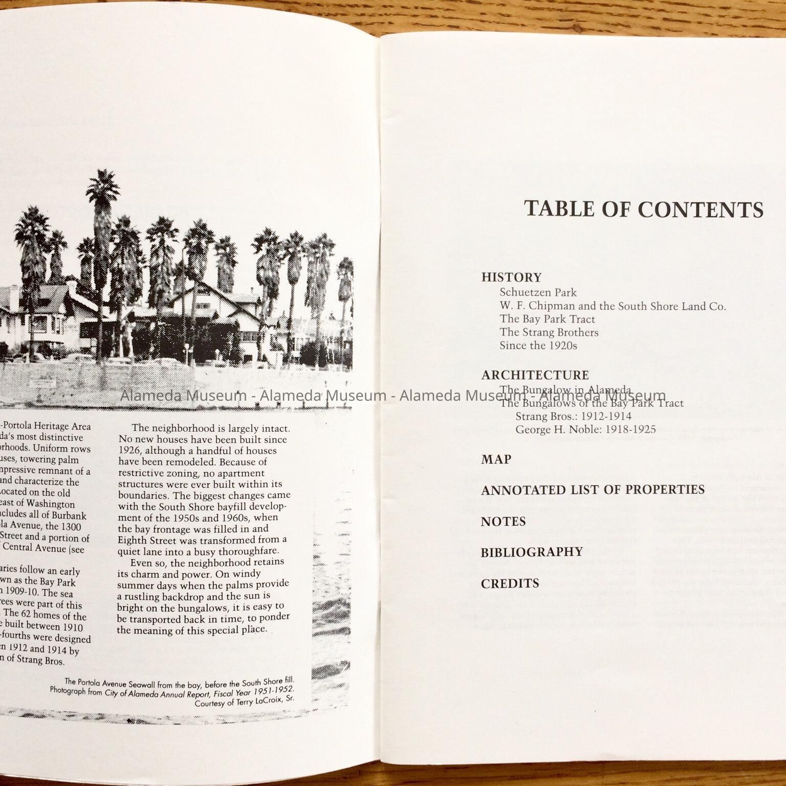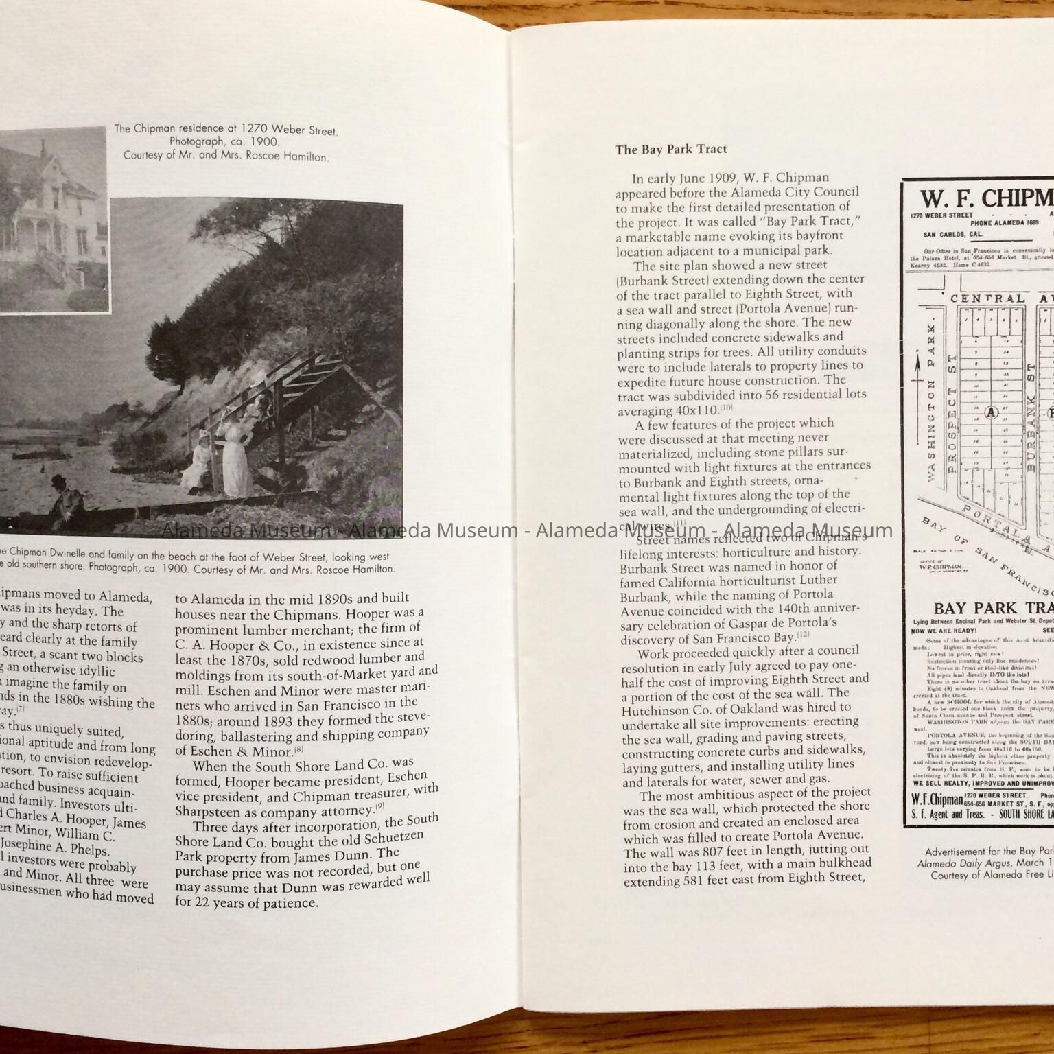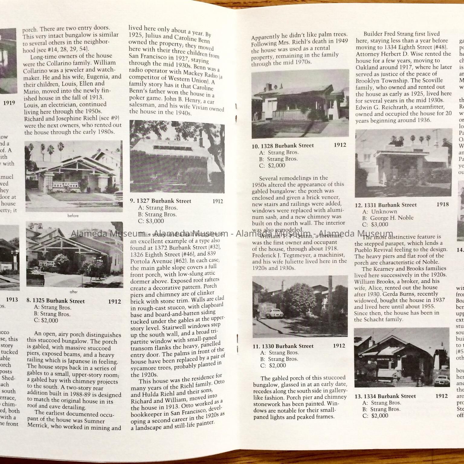 History of Object: Illustrated history of Eighth and Broadway Streets and Portola Avenue. The publication also includes photographs of individual houses with a description and history. The publication was written by Woody Minor under the auspices of the City of Alameda Historical Advisory Board.