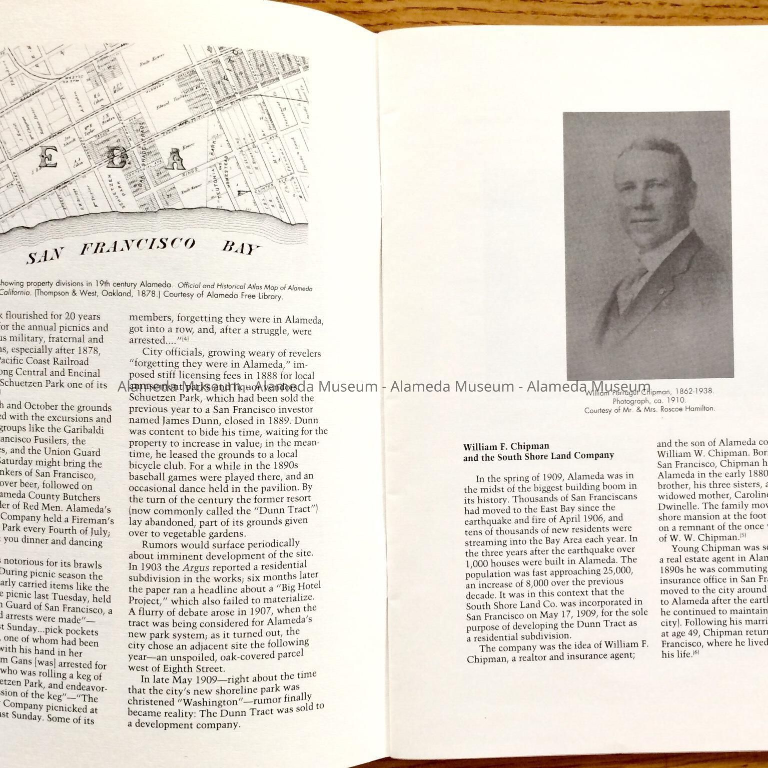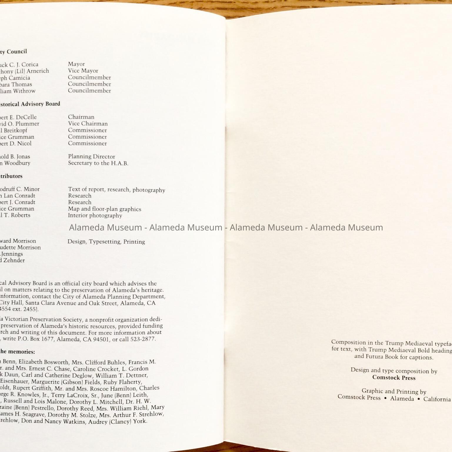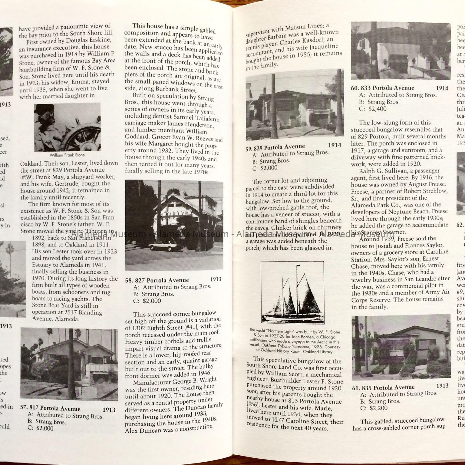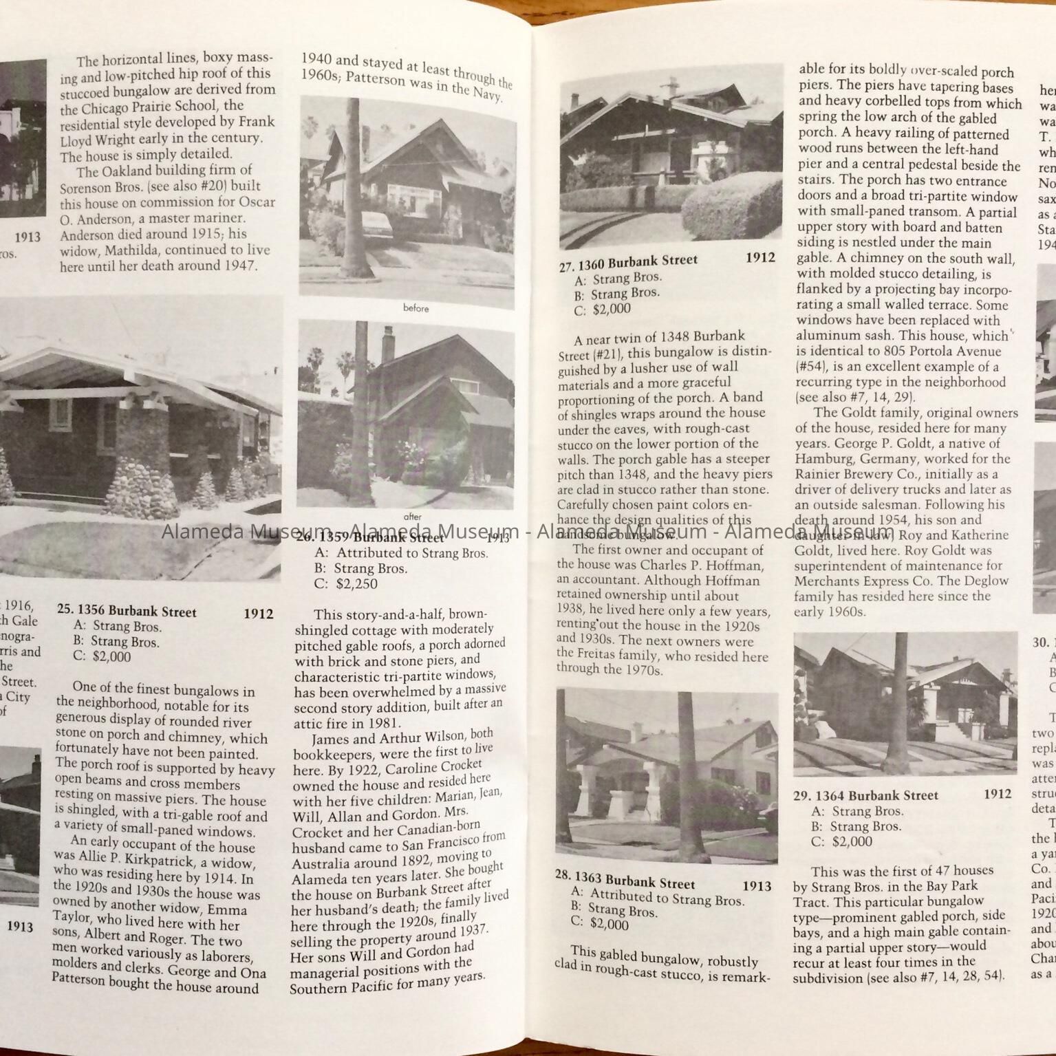 History of Object: Illustrated history of Eighth and Broadway Streets and Portola Avenue. The publication also includes photographs of individual houses with a description and history. The publication was written by Woody Minor under the auspices of the City of Alameda Historical Advisory Board.