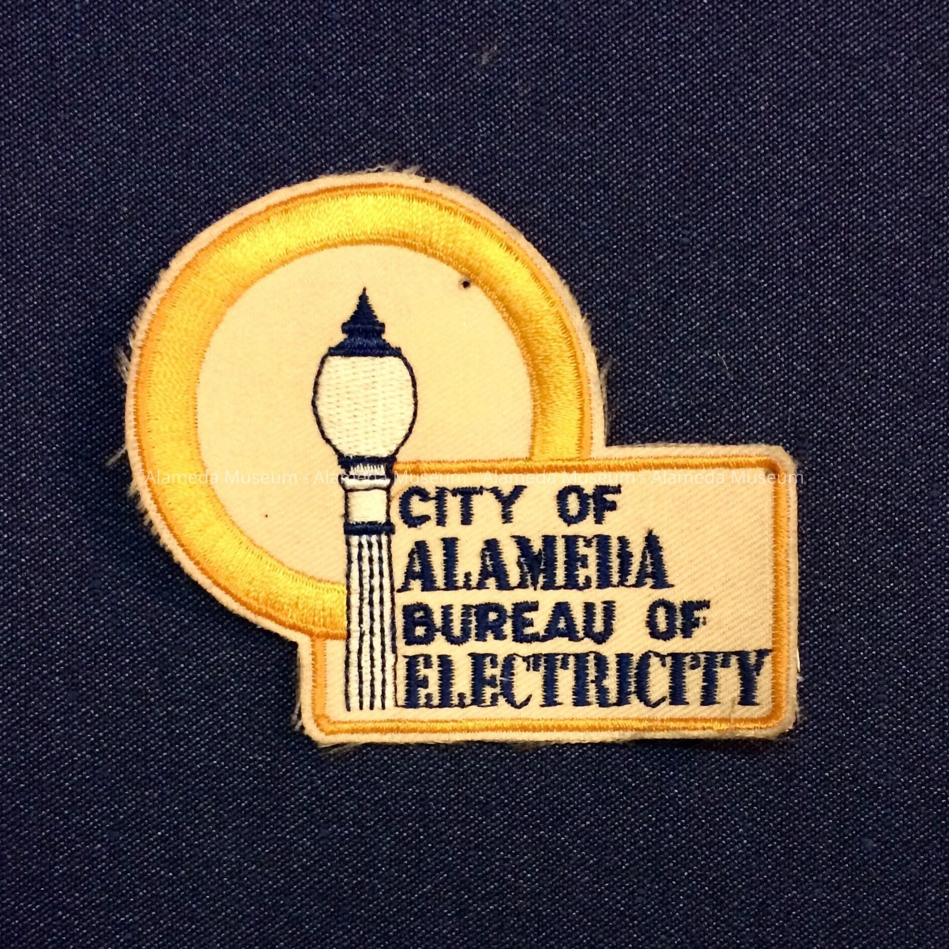 HISTORY OF OBJECT: A JACKET EMBLEM BADGE ISSUED BY THE CITY OF ALAMEDA'S BUREAU OF ELECTRICITY.