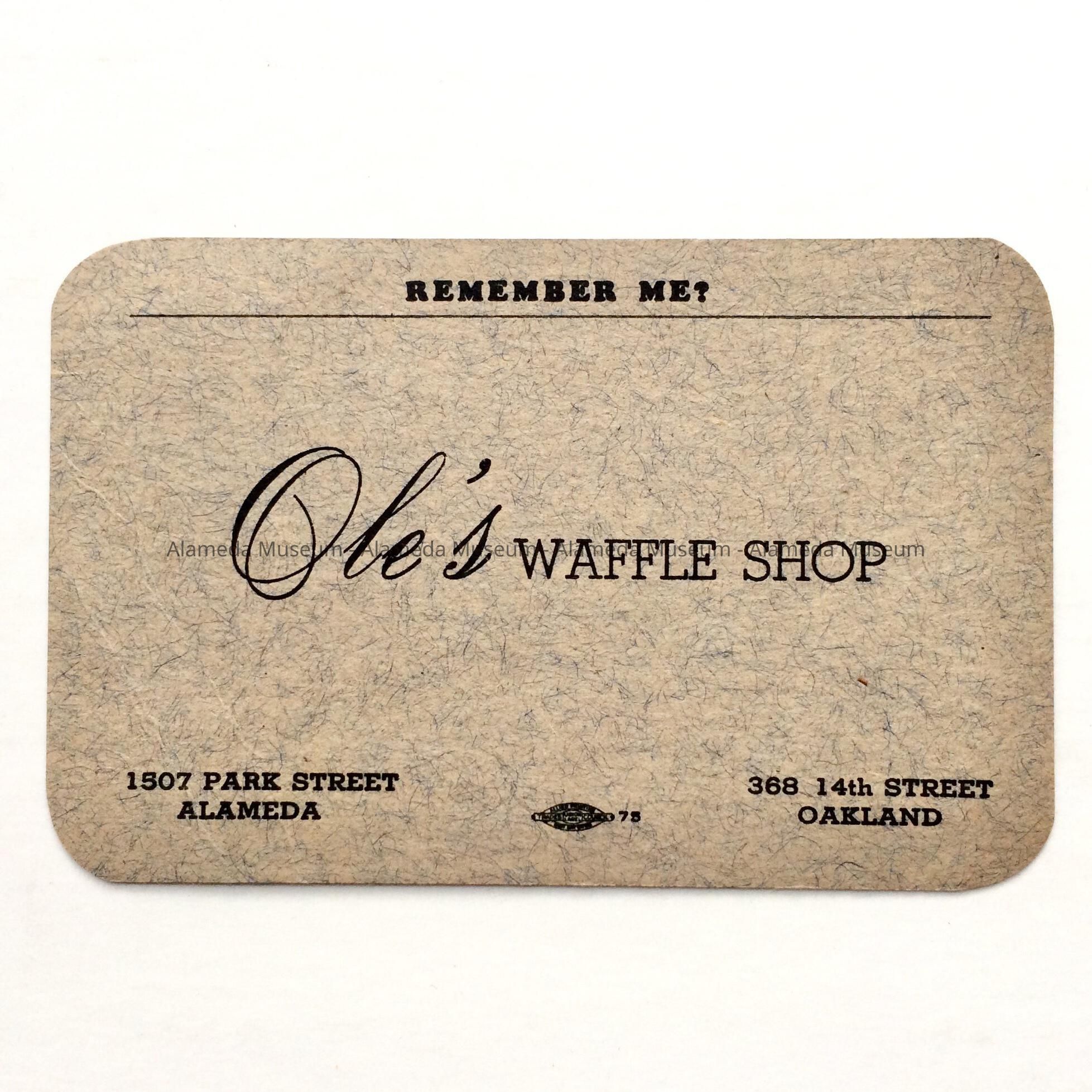 Business card for Ole's Waffle Shop, c. 1940sEntry/Object ID