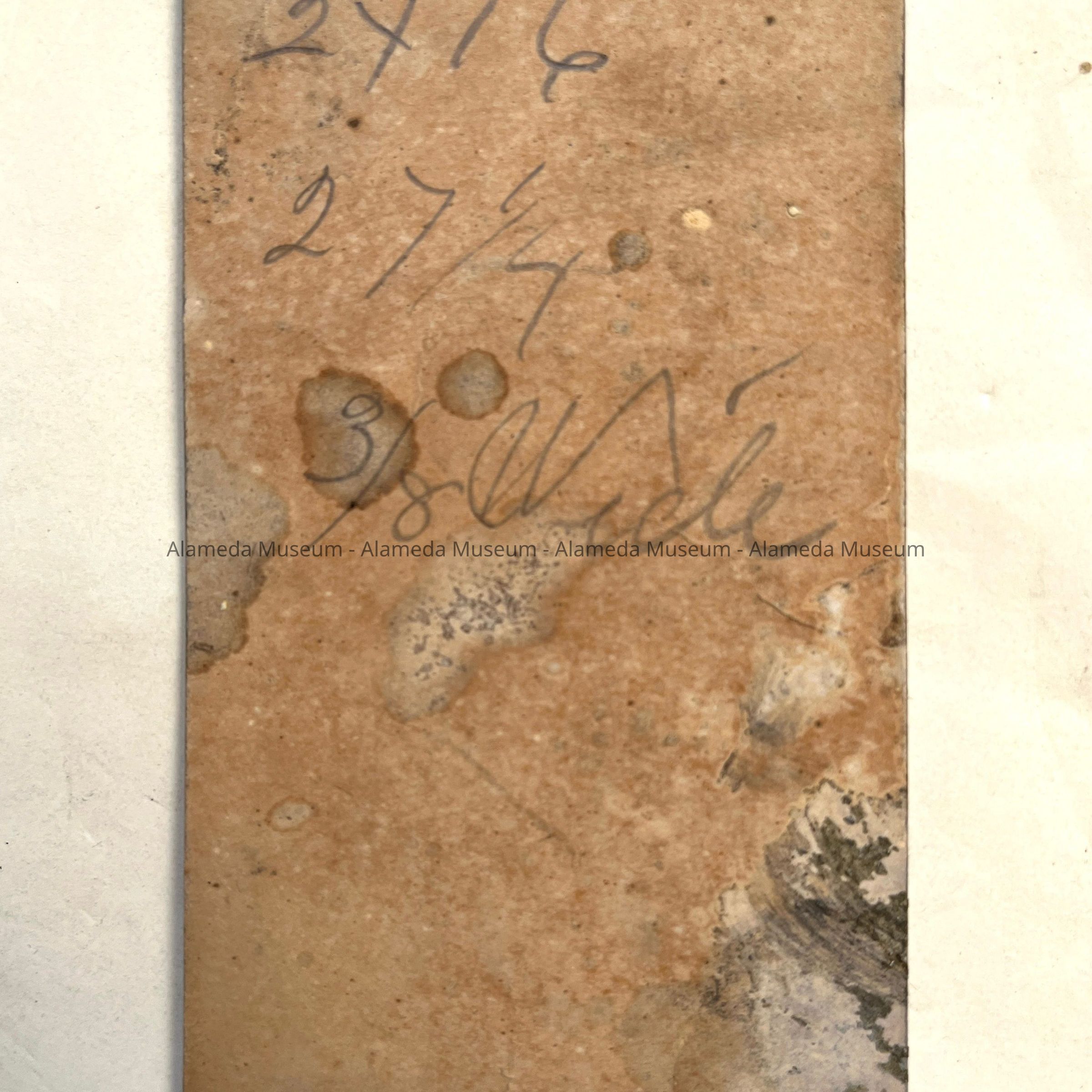 The back has a handwritten calculation.