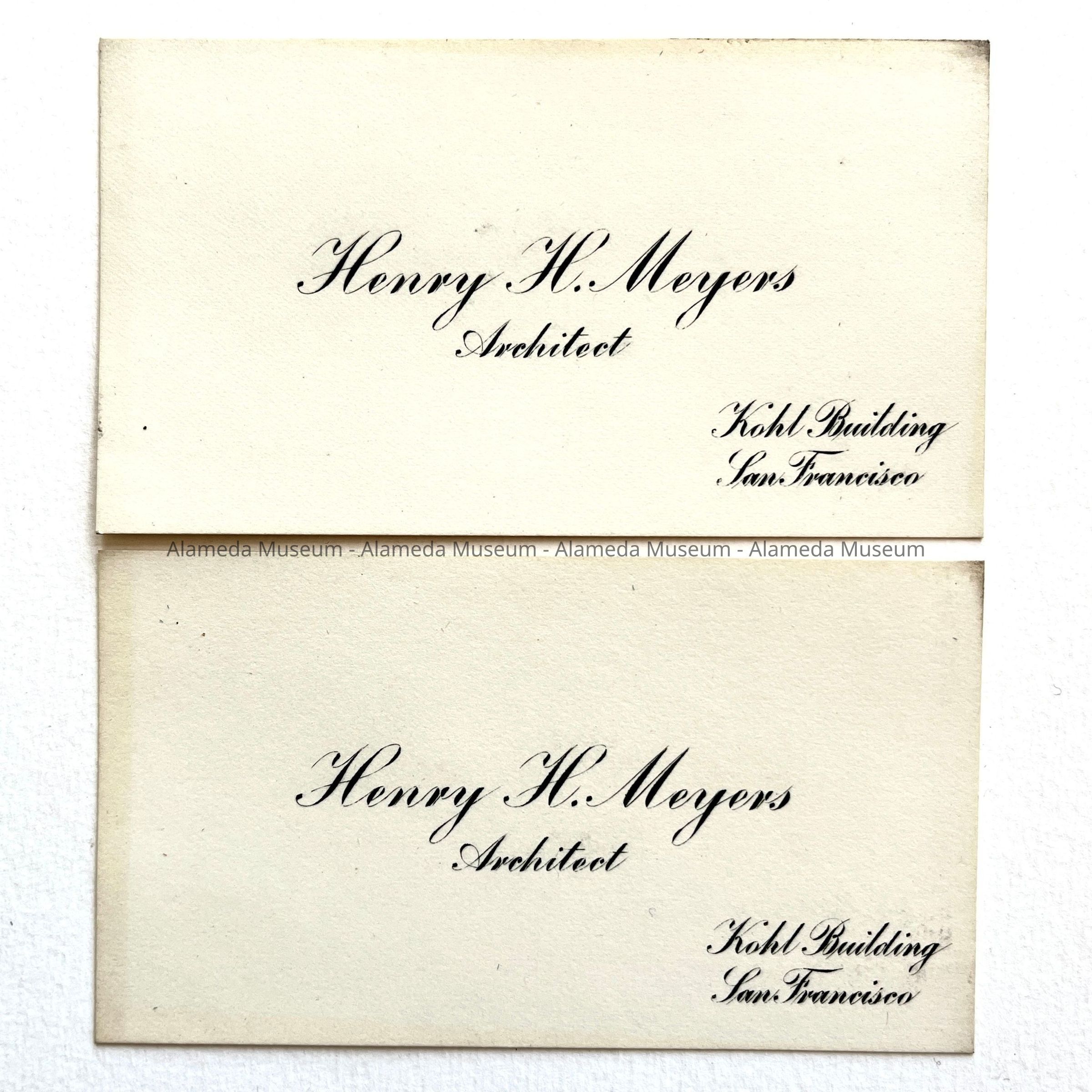 BUSINESS CARDS OF HENRY H MEYERS, ARCHITECT, KOHL BUILDING, SAN FRANCISCO.
