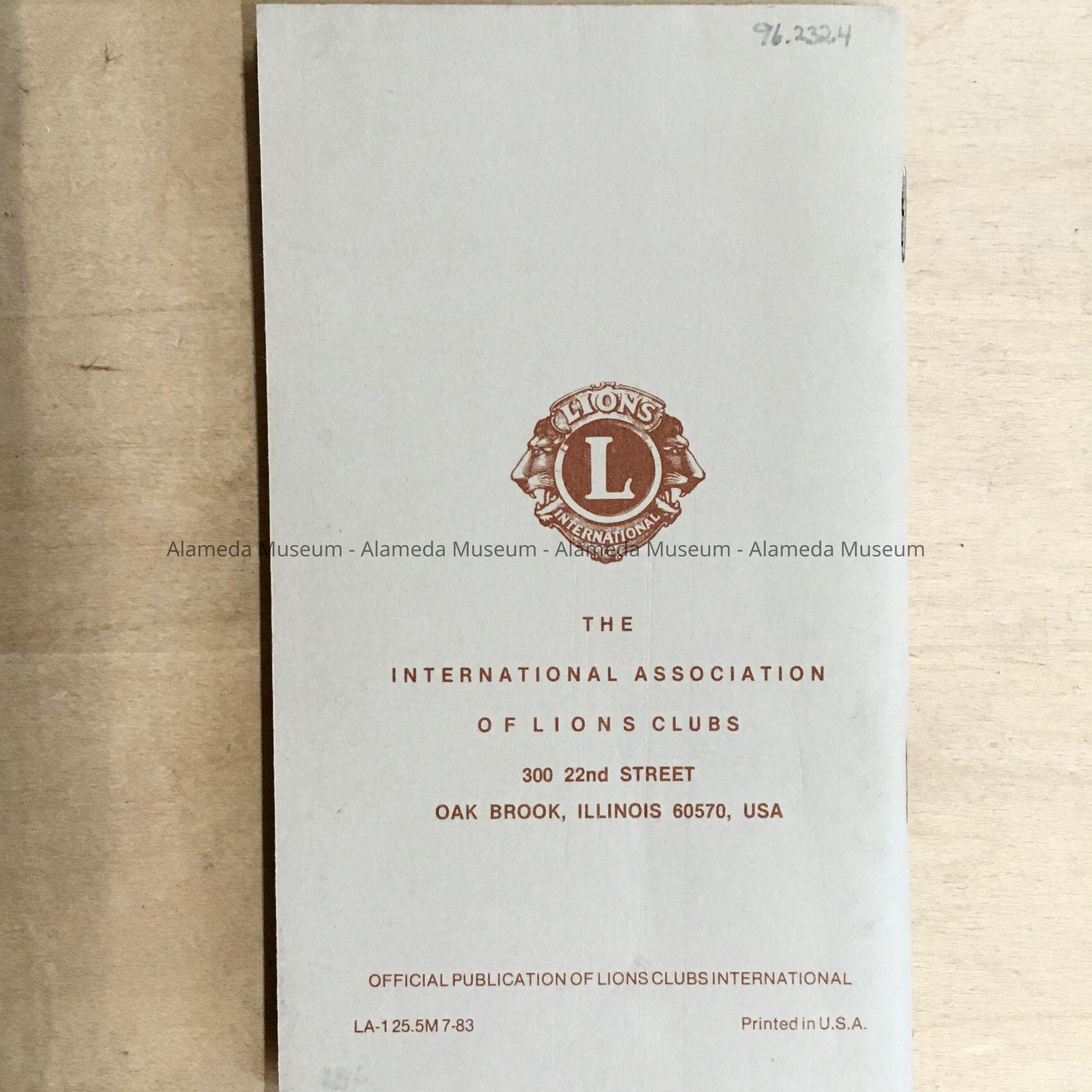 By-laws booklet of the Lions Club, 1983Entry/Object ID