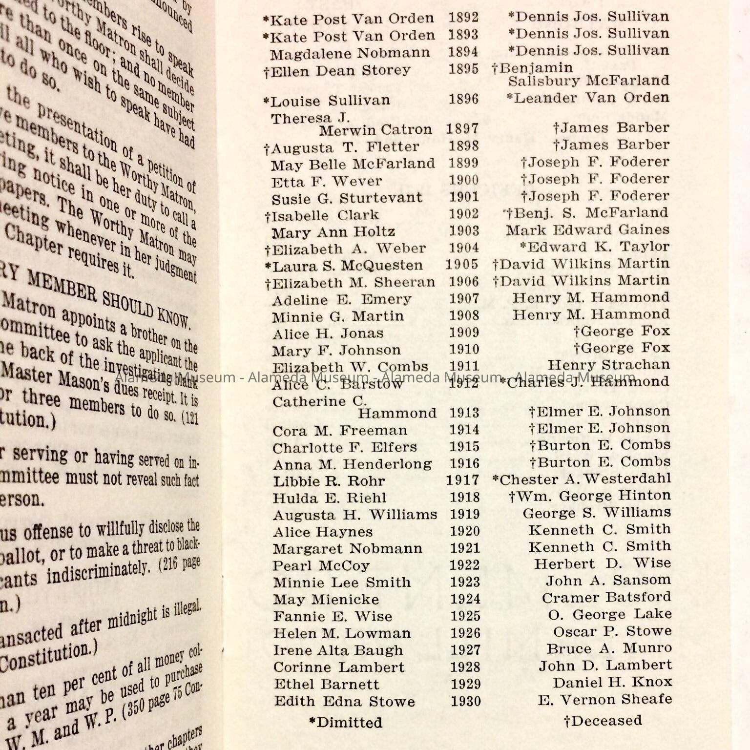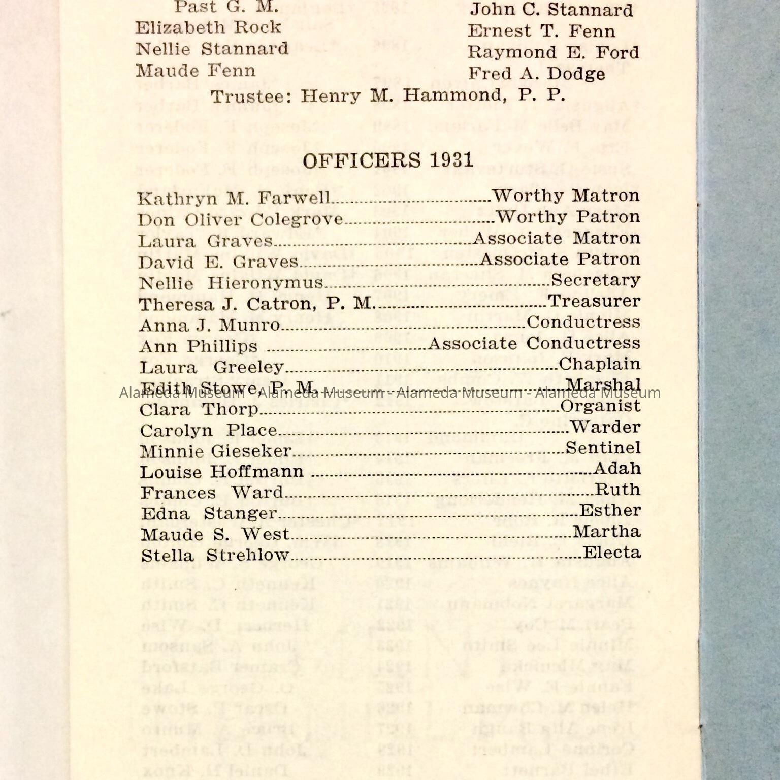 SUBJECT CATEGORY: FRATERNAL, EASTERN STAR