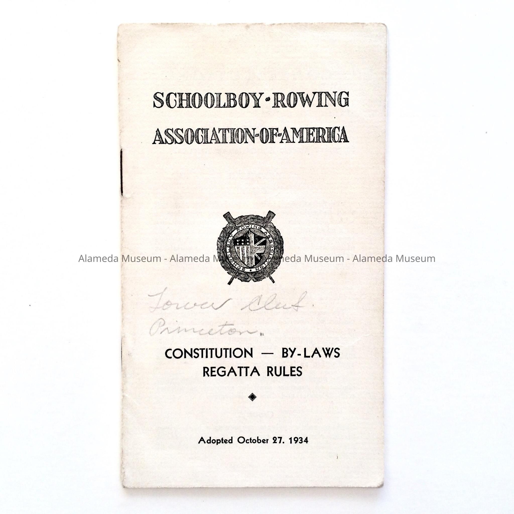 THE CONSTITUTION AND BY - LAWS OF REGATTA RULES FOR THE SCHOOL BOYS ROWING ASSOCIATION OF AMERICA. THE COPY BELONGED TO COACH LEWIS C JOLLEY OF ALAMEDA HIGH SCHOOL.