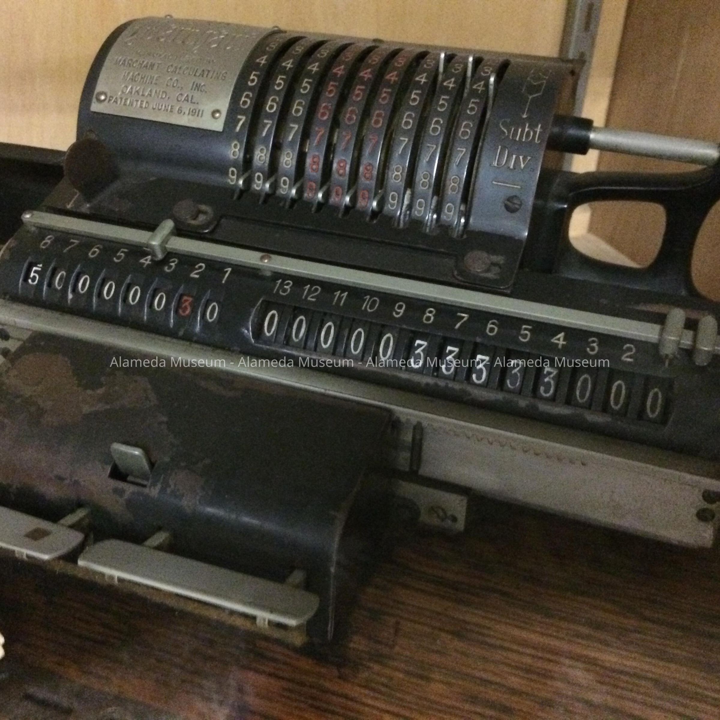 History of Object: Probably the first calculating machine in the city of Alameda. It was used by the city Engineer in the early nineteen hundreds. It has been loaned by the city to the Alameda Historical Society.