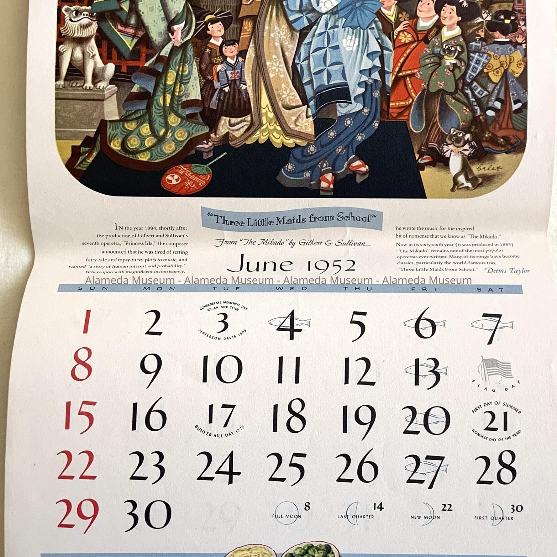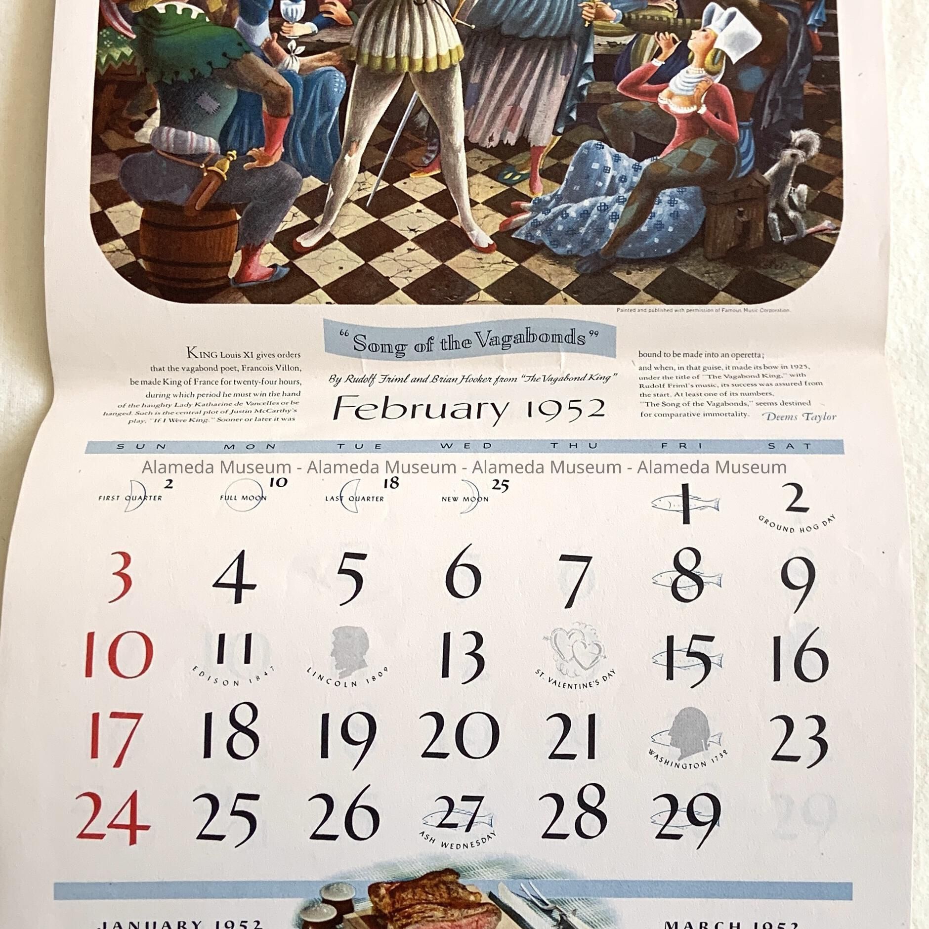 HISTORY OF OBJECT: A CALENDAR COMPLIMENTS OF GORDON'S QUALITY MARKET, 1335 PARK STREET, ALAMEDA, TELEPHONE LA 32242.