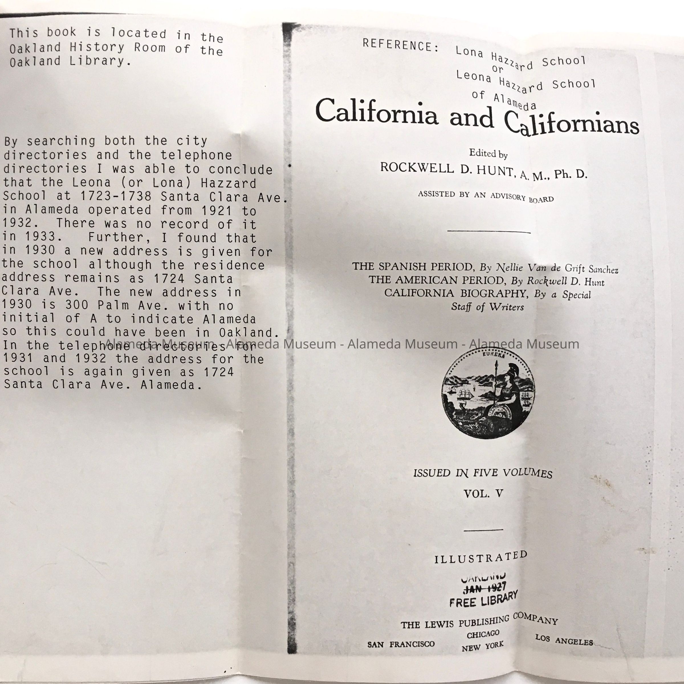 'California and Californians', History of the Lona Hazzard School, c. 1927Entry/Object ID