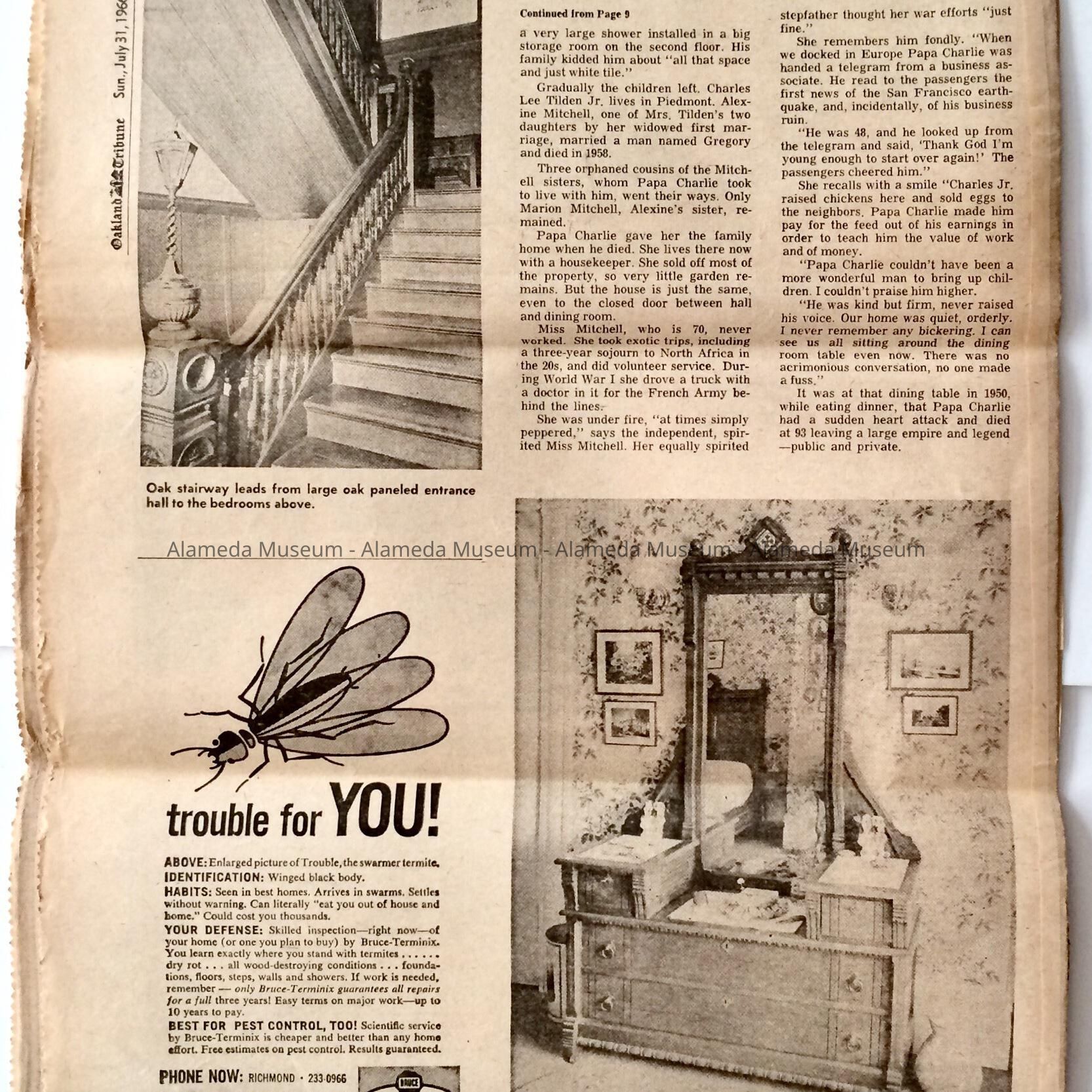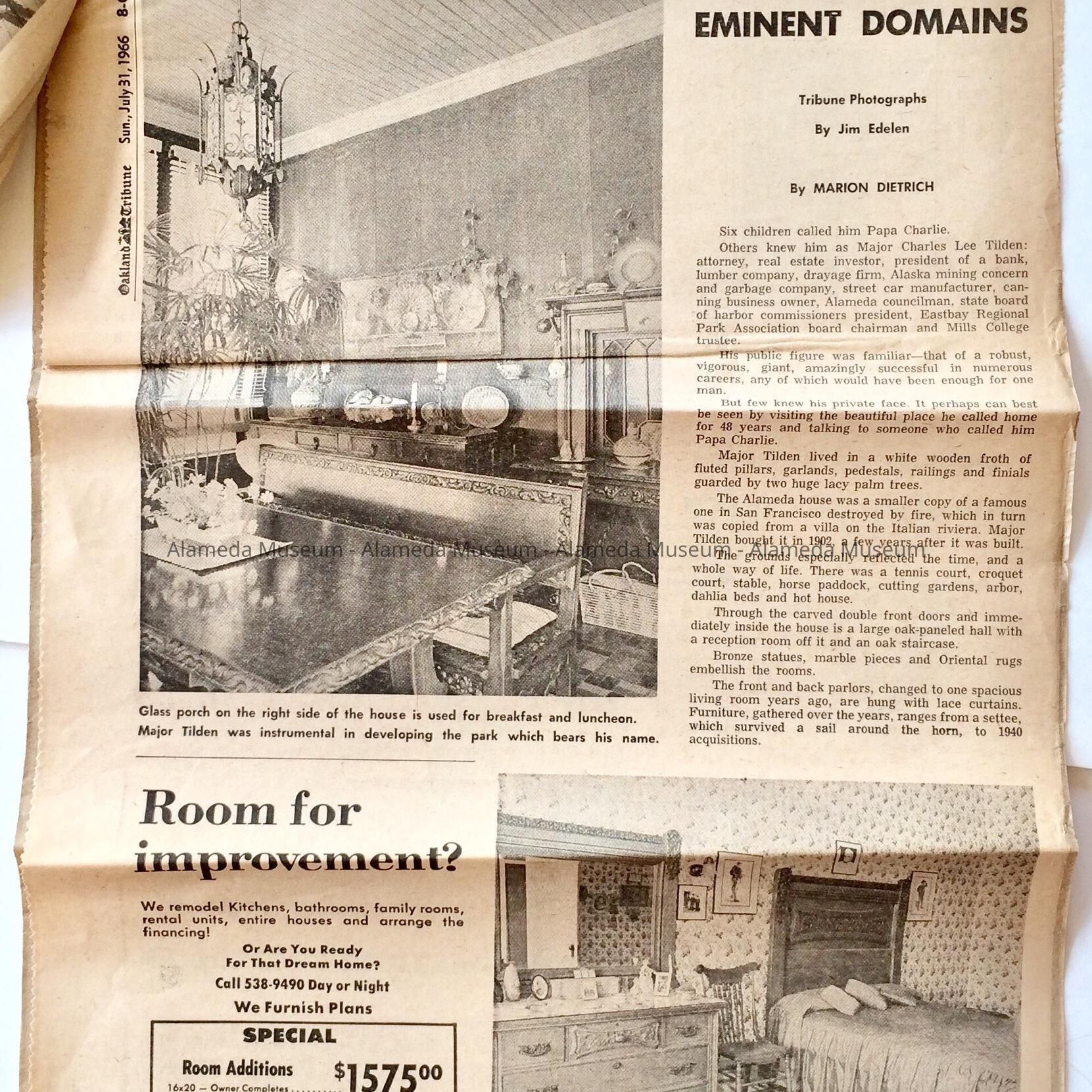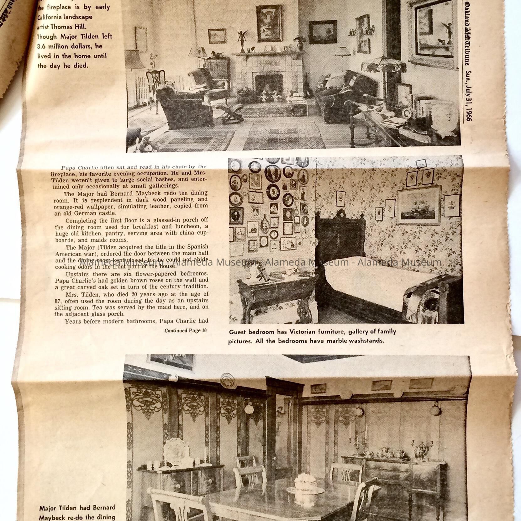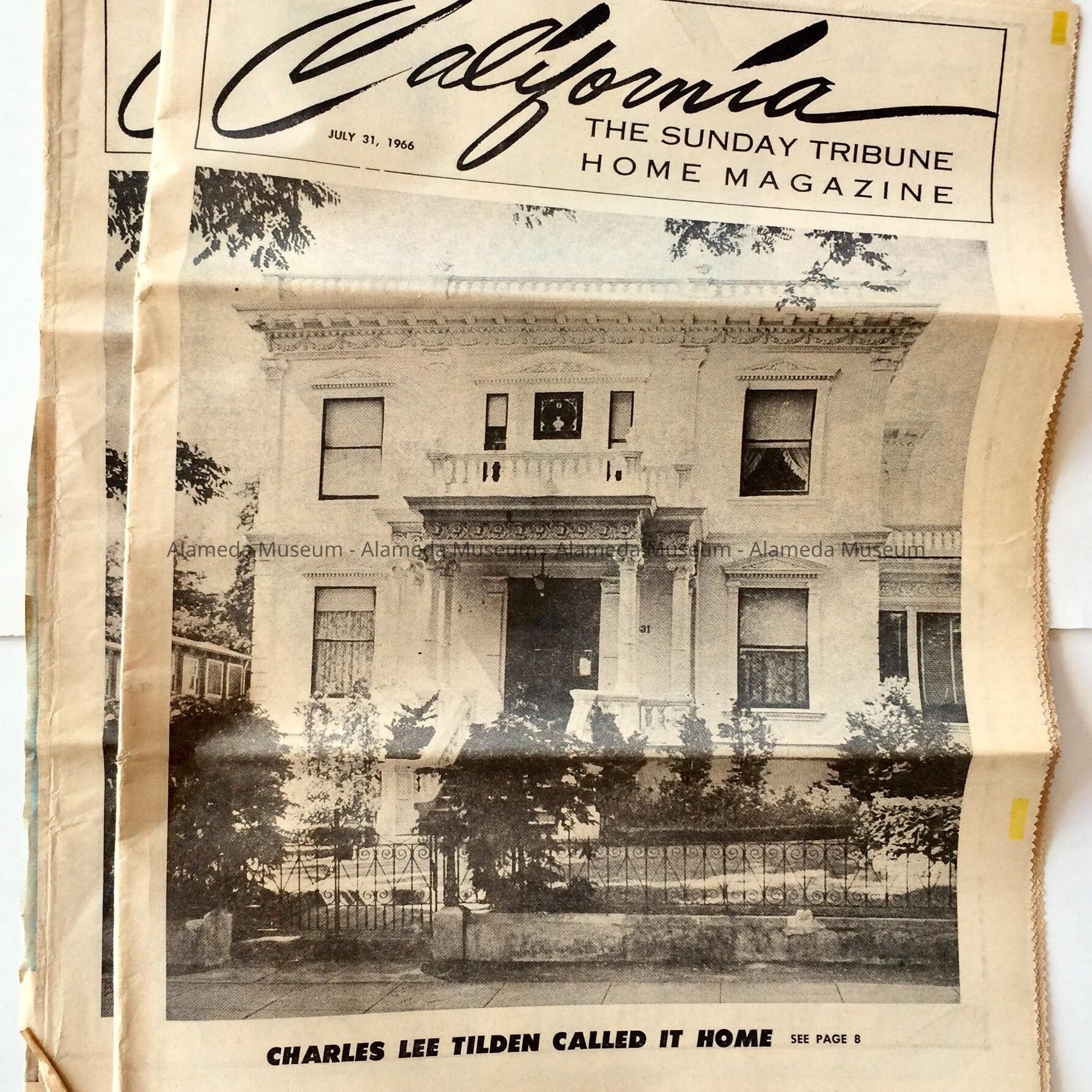 A publication entitled, "California, the Sunday Tribune Home Magazine," which includes a cover design of the exterior of the building, and article and illustration about the interior of the Charles Lee Tilden mansion at 1031 San Antonio Avenue. The illustrations document the original furnishings.