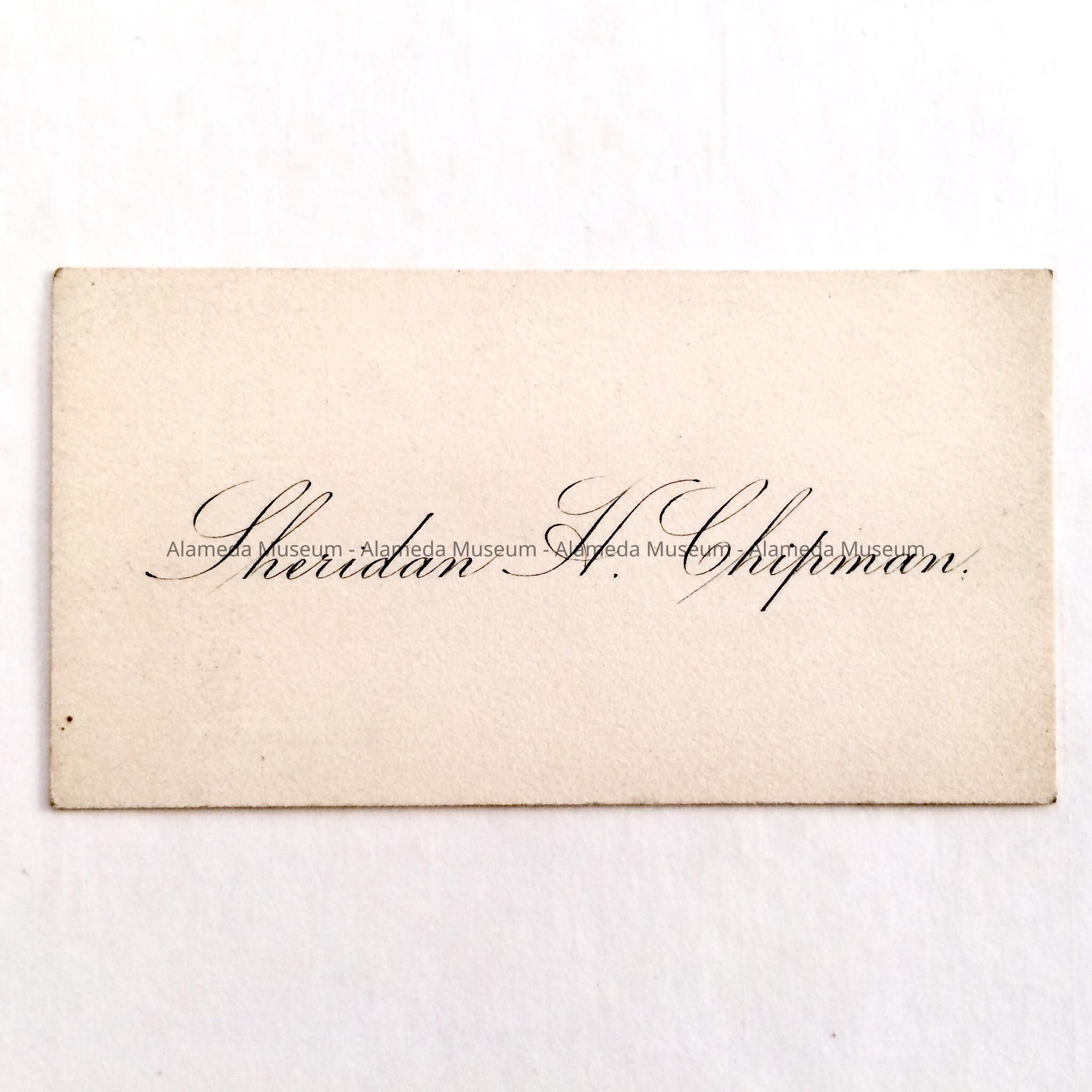 History of Object: Calling card of Sheridan H. Chipman, son of W. W. Chipman and Caroline Chipman Dwinelle. He died in 1903.