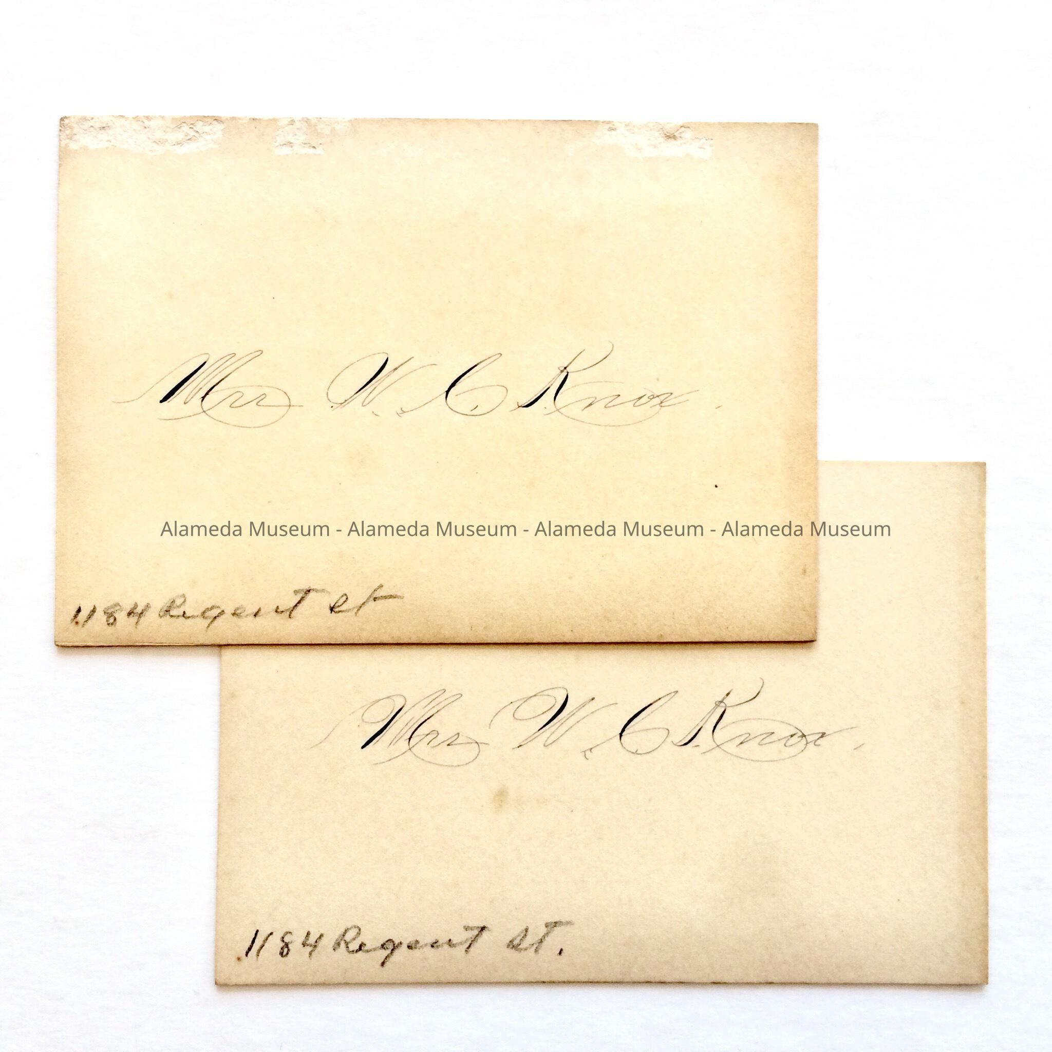 Calling cards of Mrs. W. C. Knox of 1184 Regent Street, c. early 1900sEntry/Object ID