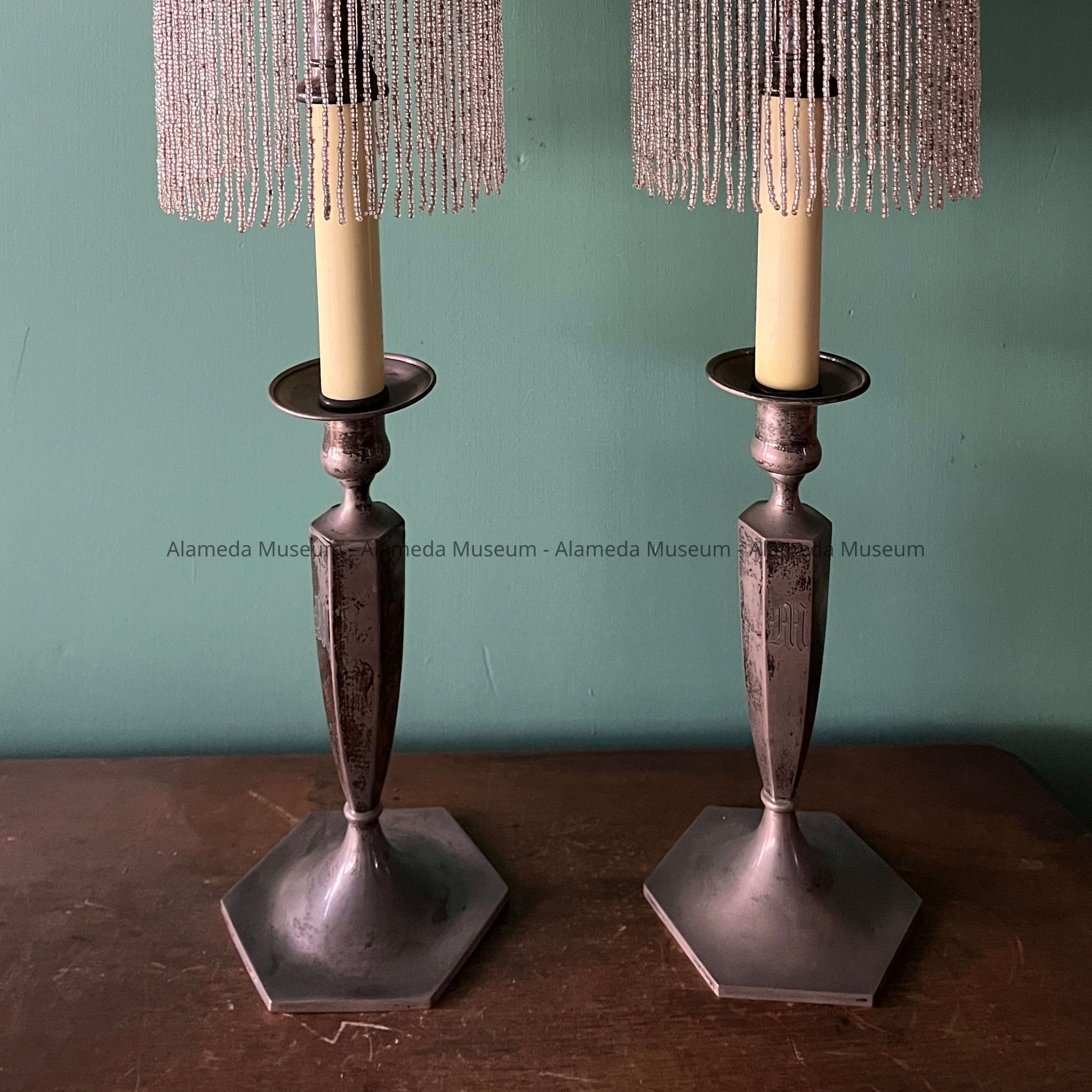 History of Object: Candle Sticks originally belonging to the May or Meyers family.