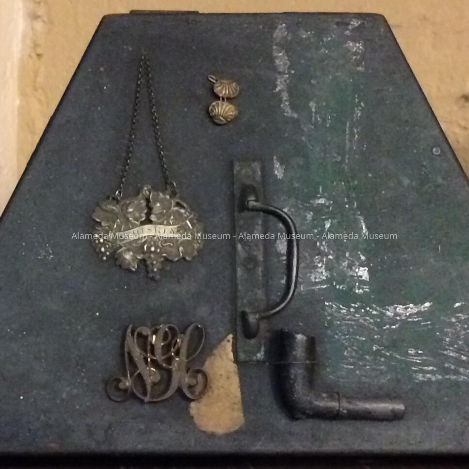 History Of Object: Odds and ends owned by Captain Robert D. Trudgett. He was in World War I. His boat was captured by the Germans and he was imprisoned for eight months. He lived in Alameda twenty-nine years and died here. The sextant from this box cannot be found. Museum collection from Miss Caroline Potter, Washington School.