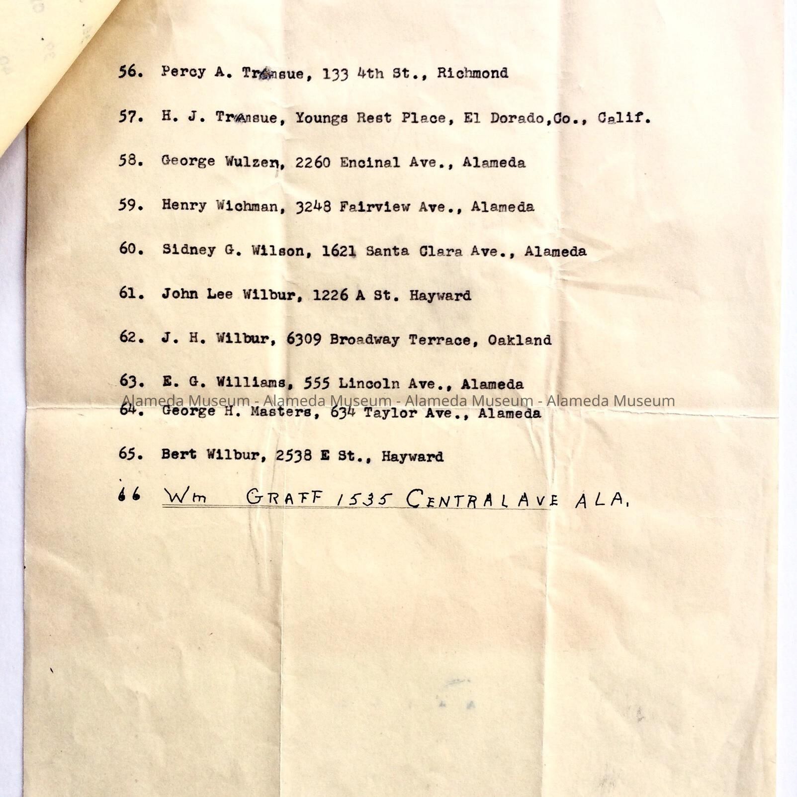 Carbon copy of West End School alumni roster, 1950Entry/Object ID