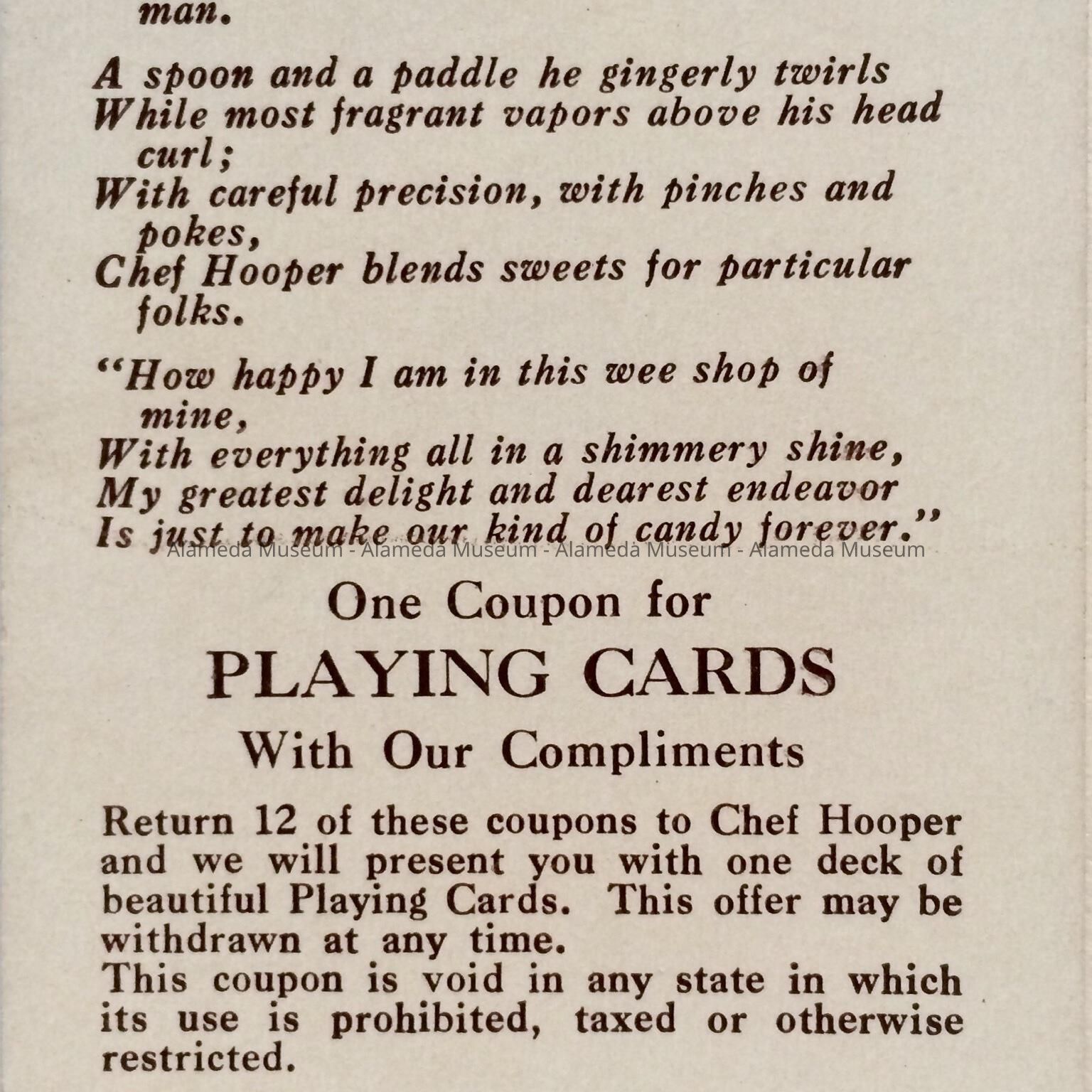 History of Object: An advertising card for Hooper's Confections Inc. of Alameda.