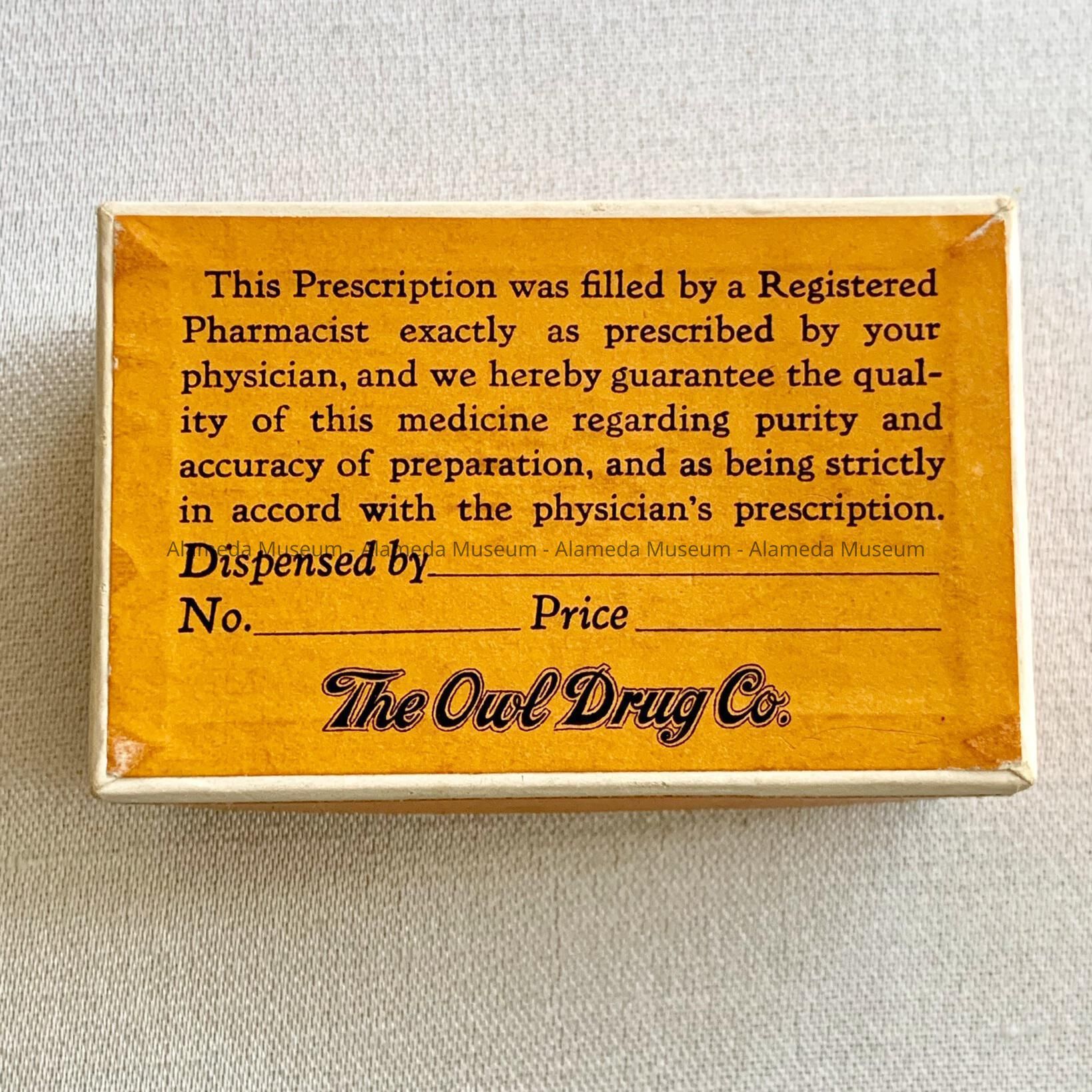 Cardboard Pill box from Owl Drug Company StoreEntry/Object ID