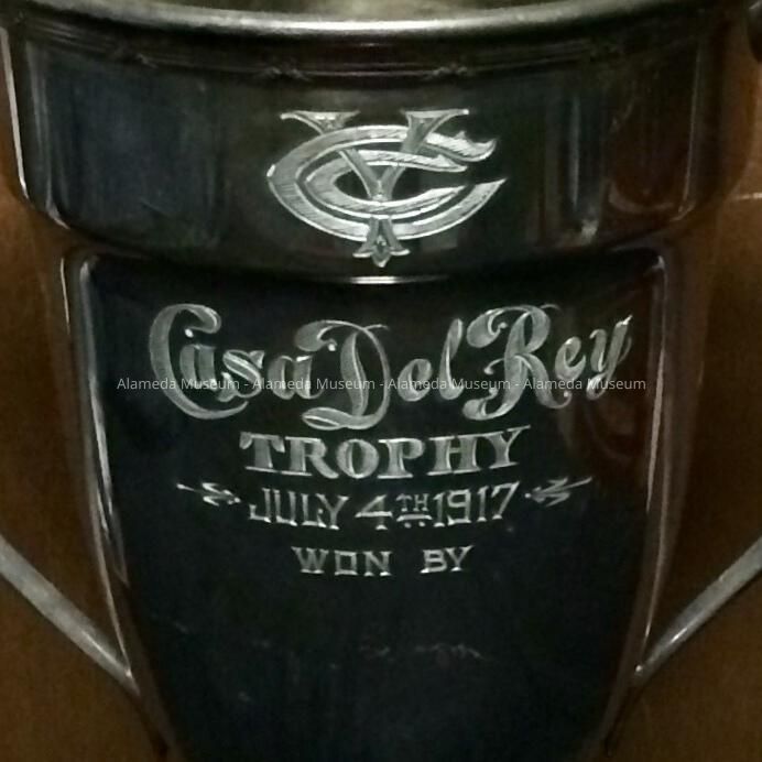 History of Object: A trophy engraved "Casa del Rey Trophy July 4th, 1917. Won by _(blank)". It was presumably won by Lester F. Stone, Alameda.