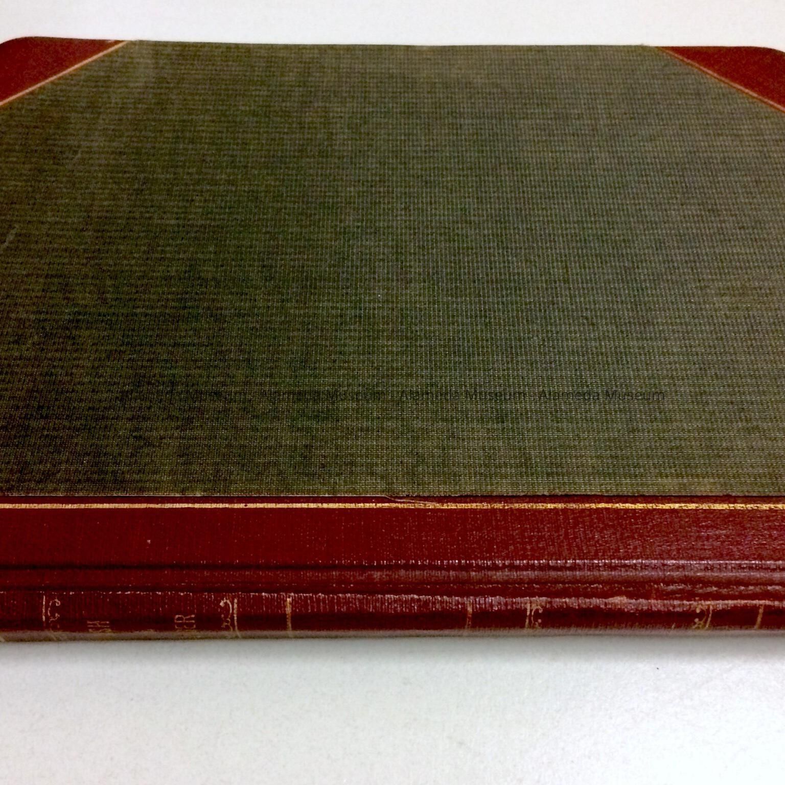 DESCRIPTION: A HARDBOUND LEDGER COVERED IN IMITATION BURGUNDY COLORED LEATHER WITH A BLACK COLORED BUCKRAM COVER CONTAINING HANDWRITTEN ENTRIES ON LINED PAPER IN INK.