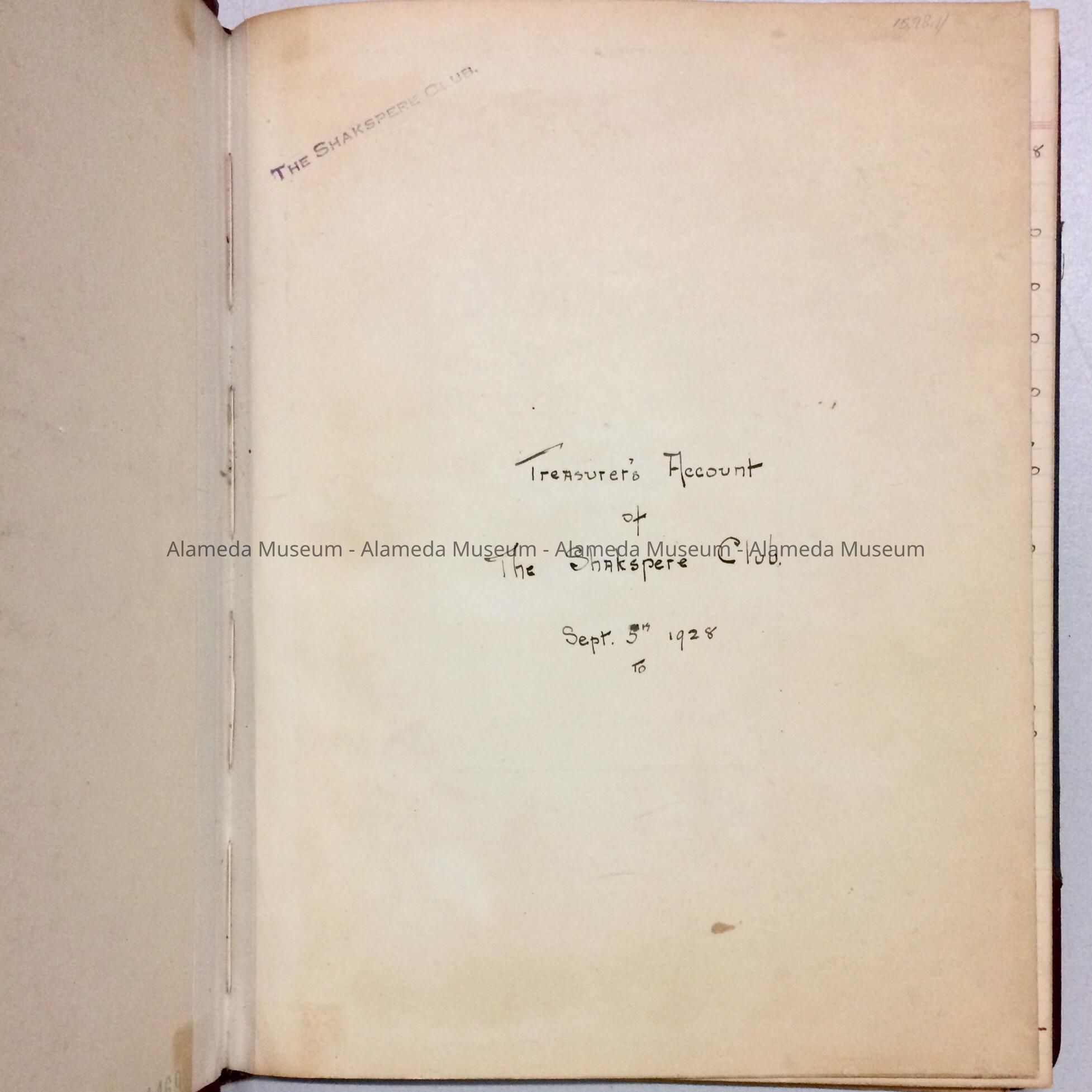 HISTORY OF OBJECT: CASH AND LEDGER BOOK OF THE SHAKSPERE CLUB, BEGINNING IN SEPTEMBER 1928.