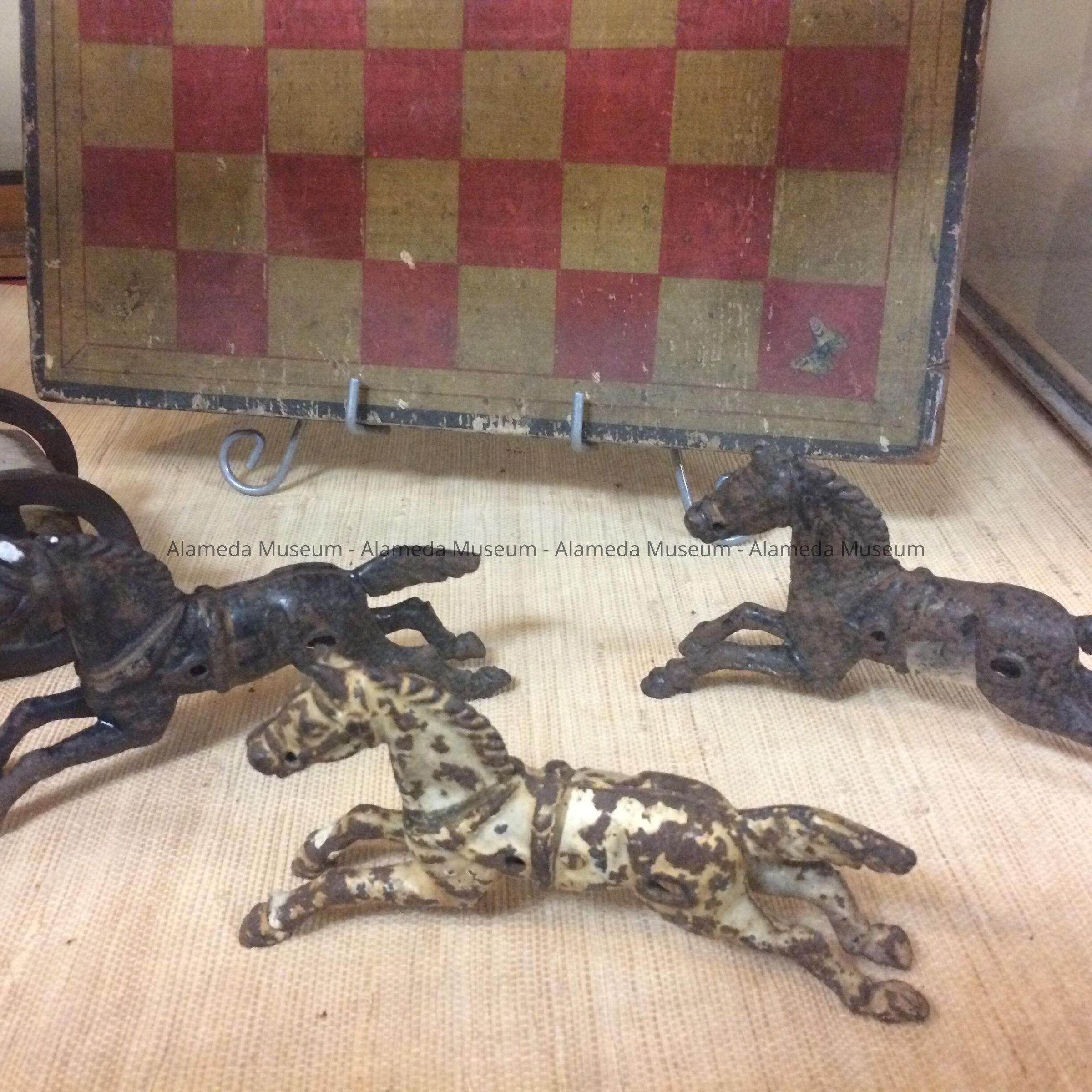 History of Object: Cast iron toy horses that belonged to an unknown member of the W. W. Chipman (co-purchaser & co-founder City of Alameda) family.
