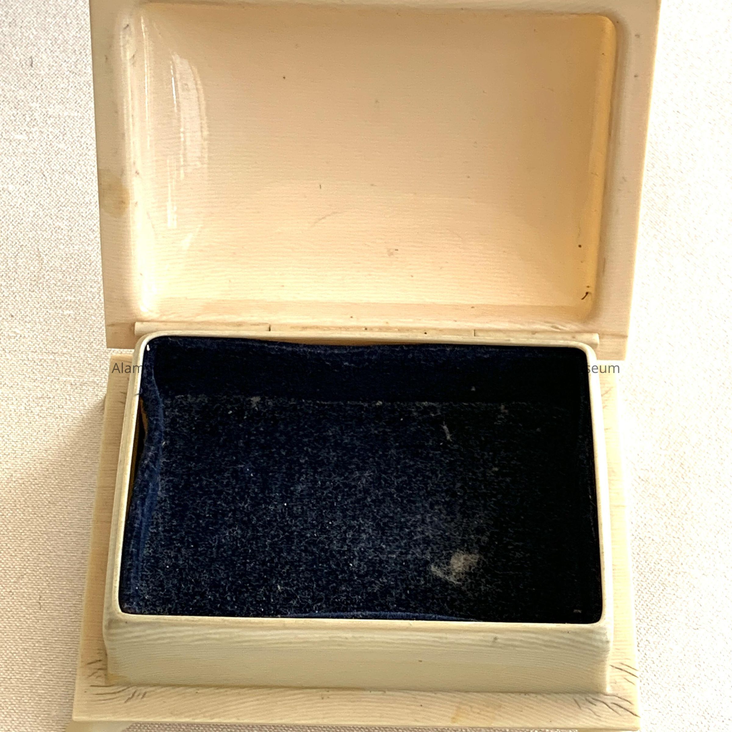 Celluloid jewel box of Mrs. Marie Anderson Camp, mother of the donor and an old time resident of Alameda.