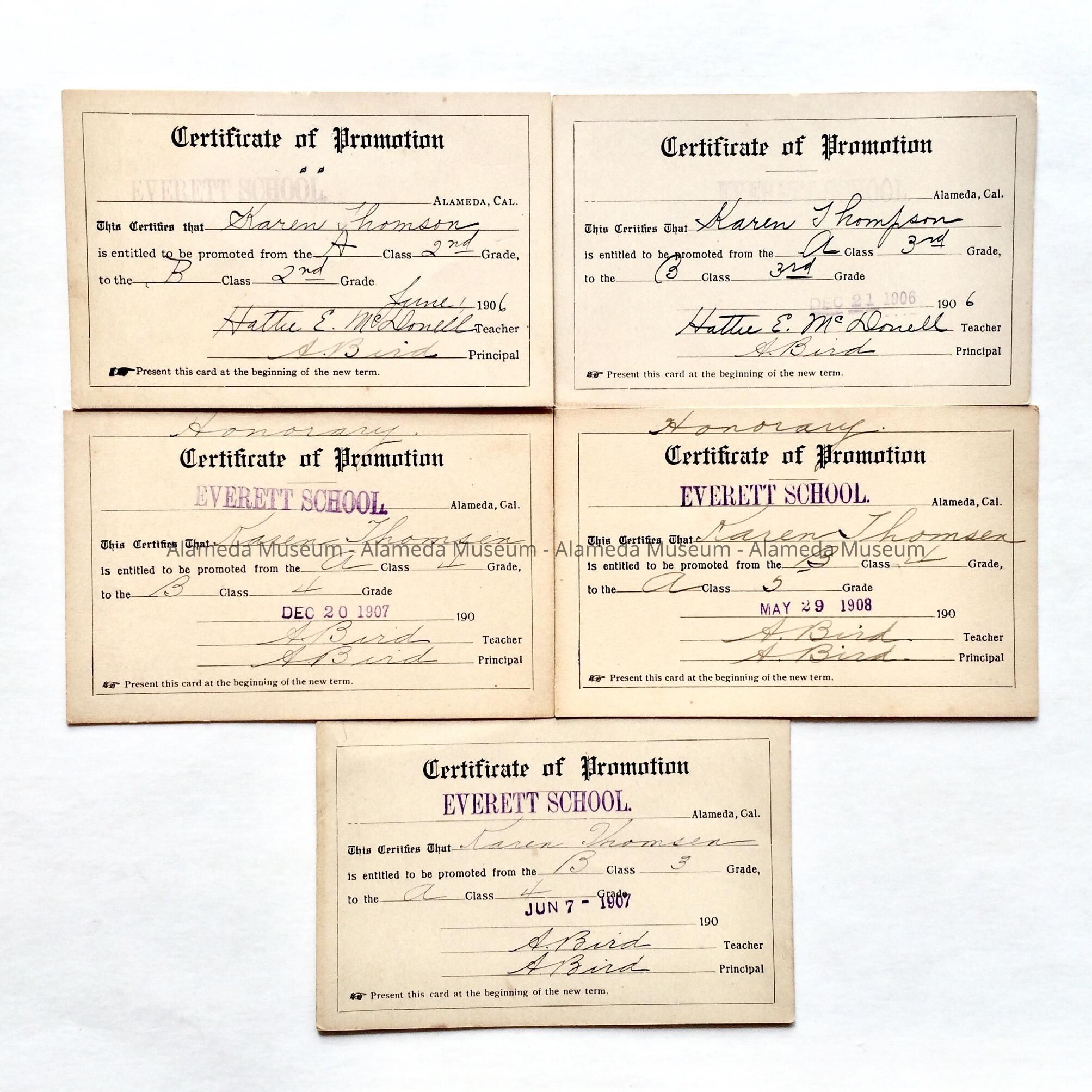 Certificates of promotion awarded Karen Thomsen, Everett school, 1906-1908Entry/Object ID