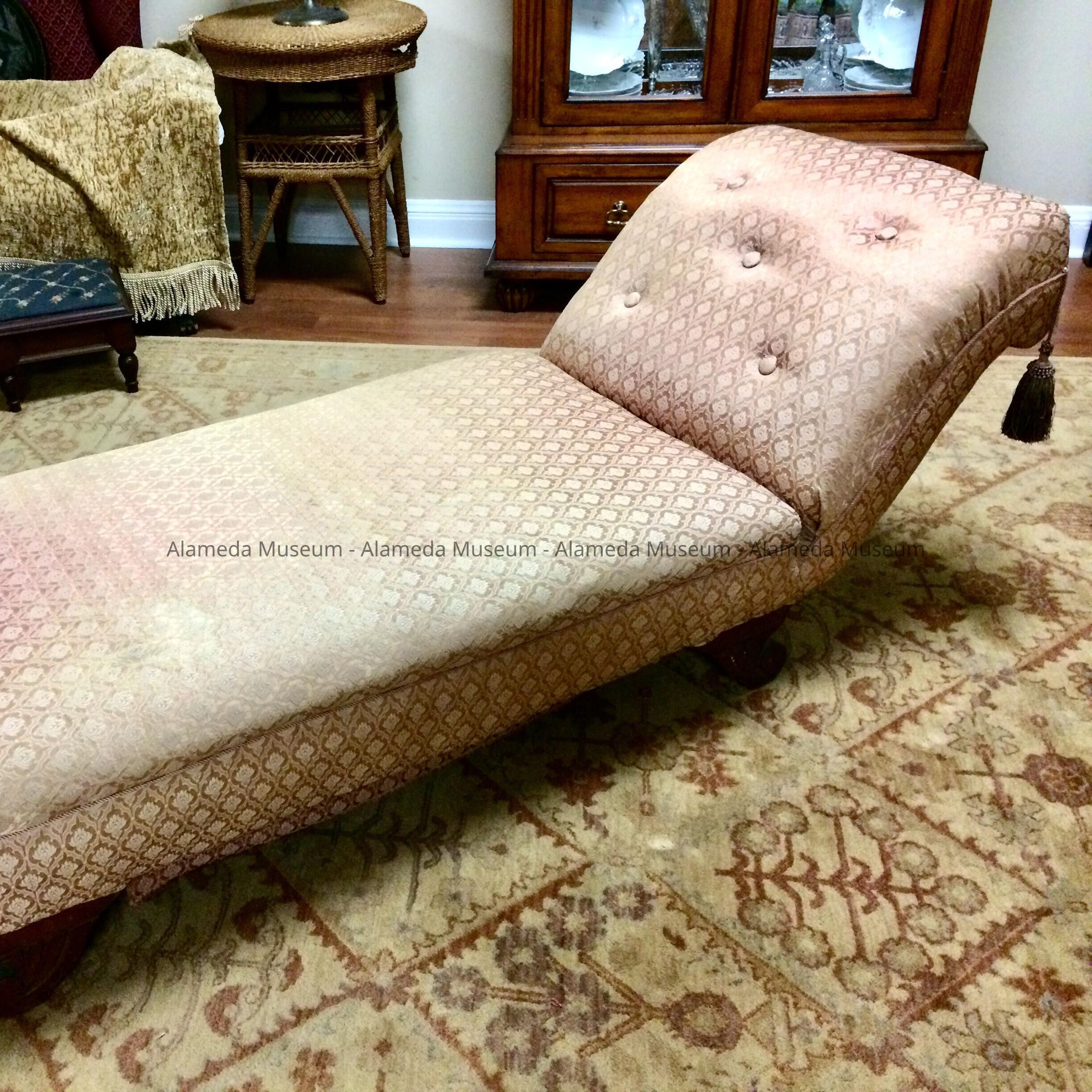 HISTORY OF OBJECT: CHAISE LOUNGE THAT BELONGED TO MRS. J. C. LINDERMAN, GRANDMOTHER OF THE LATE MABEL LINDERMAN KOLLMYER. THE LINDERMAN HOME WAS LOCATED AT THE SOUTHEAST CORNER OF CENTRAL AVENUE AND HIGH STREET, ALAMEDA. THE HOME HAS BEEN DEMOLISHED.