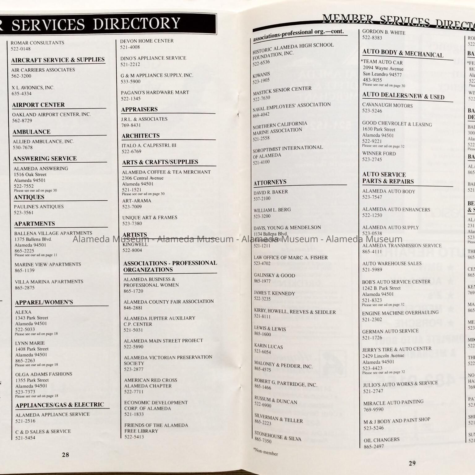 Subject Category: Chamber of Commerce; Businesses of Alameda