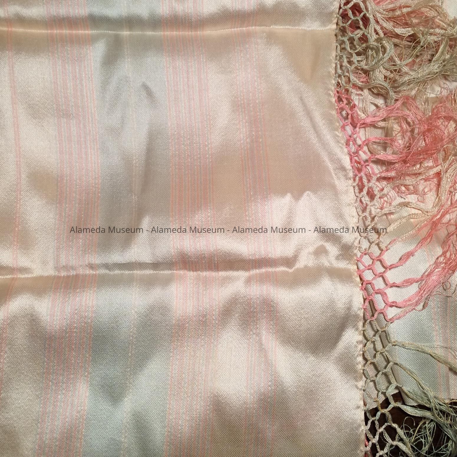 Champagne silk shawl with pastel pink and blue stripes, before 1930Entry/Object ID