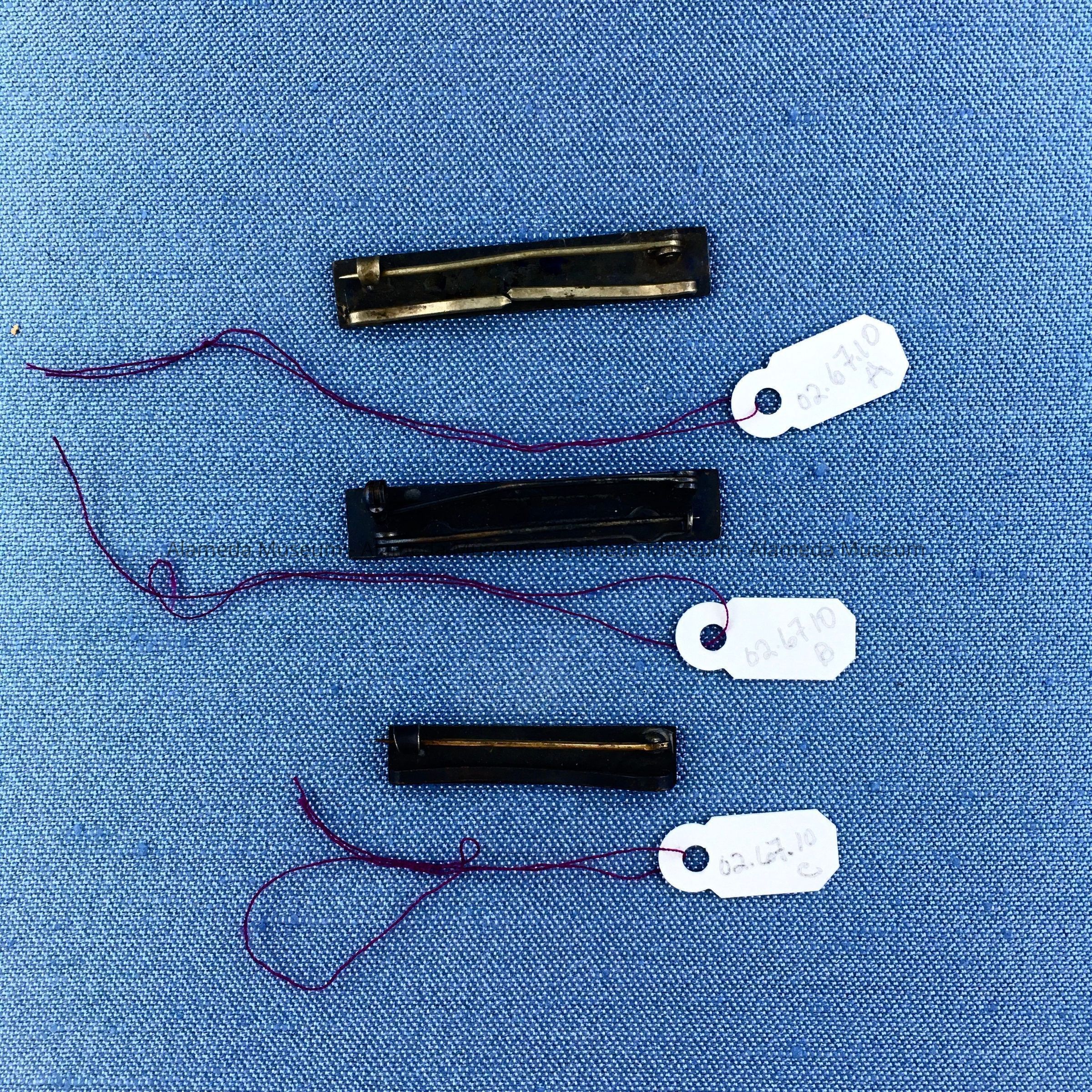 BAR PINS THAT APPEARED TO HAVE ONE TIME SUPPORTED RIBBONS. WON BY GEORGE MITCHELL, ALAMEDA RESIDENT.