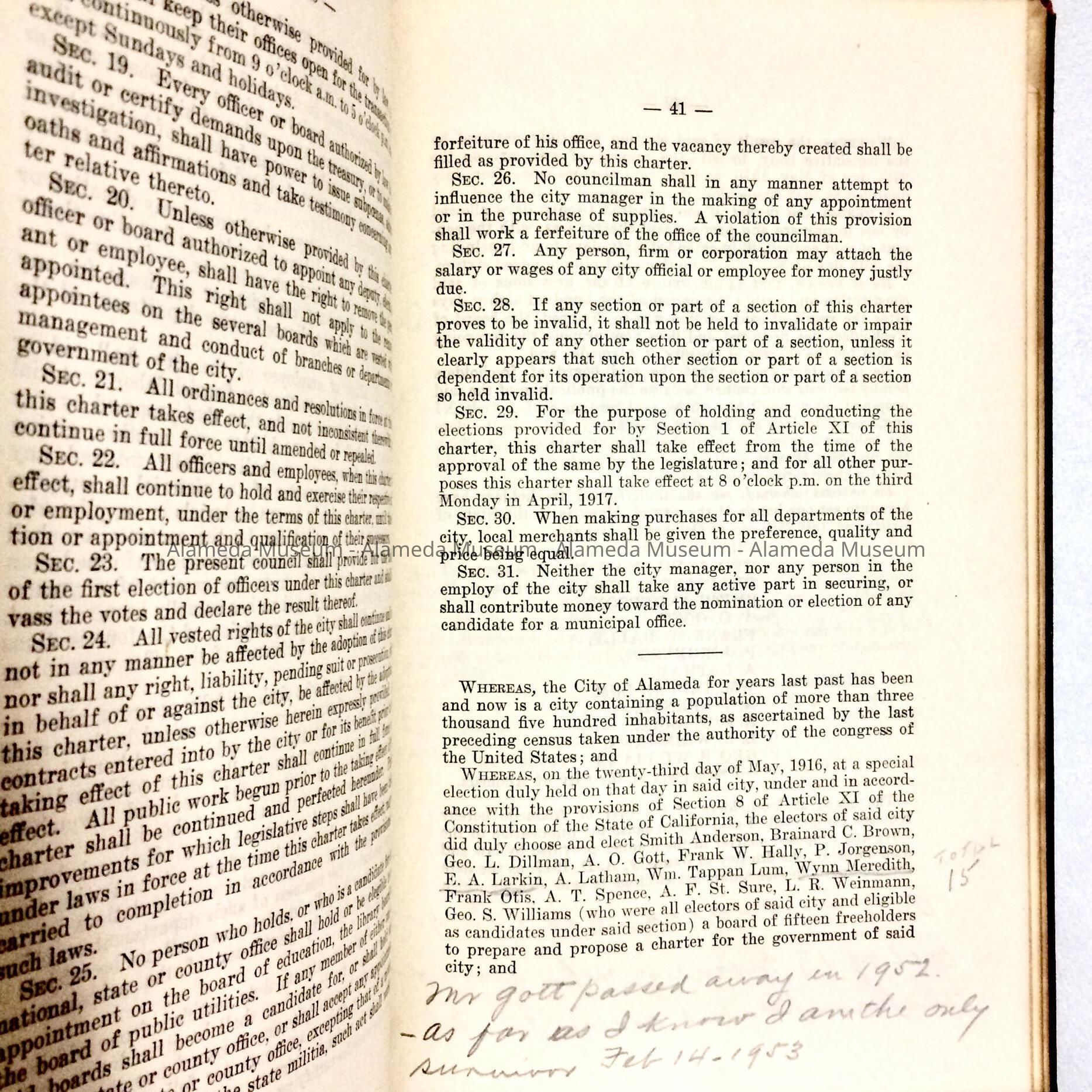 Charter of City of Alameda, 1917, of George S. WilliamsEntry/Object ID