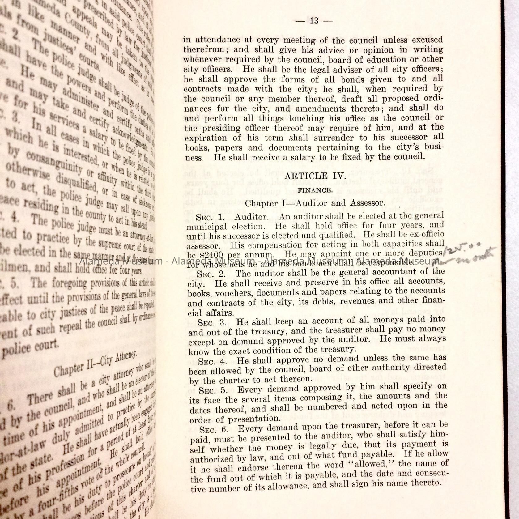 Charter of City of Alameda, 1917, of W. H. NoyEntry/Object ID