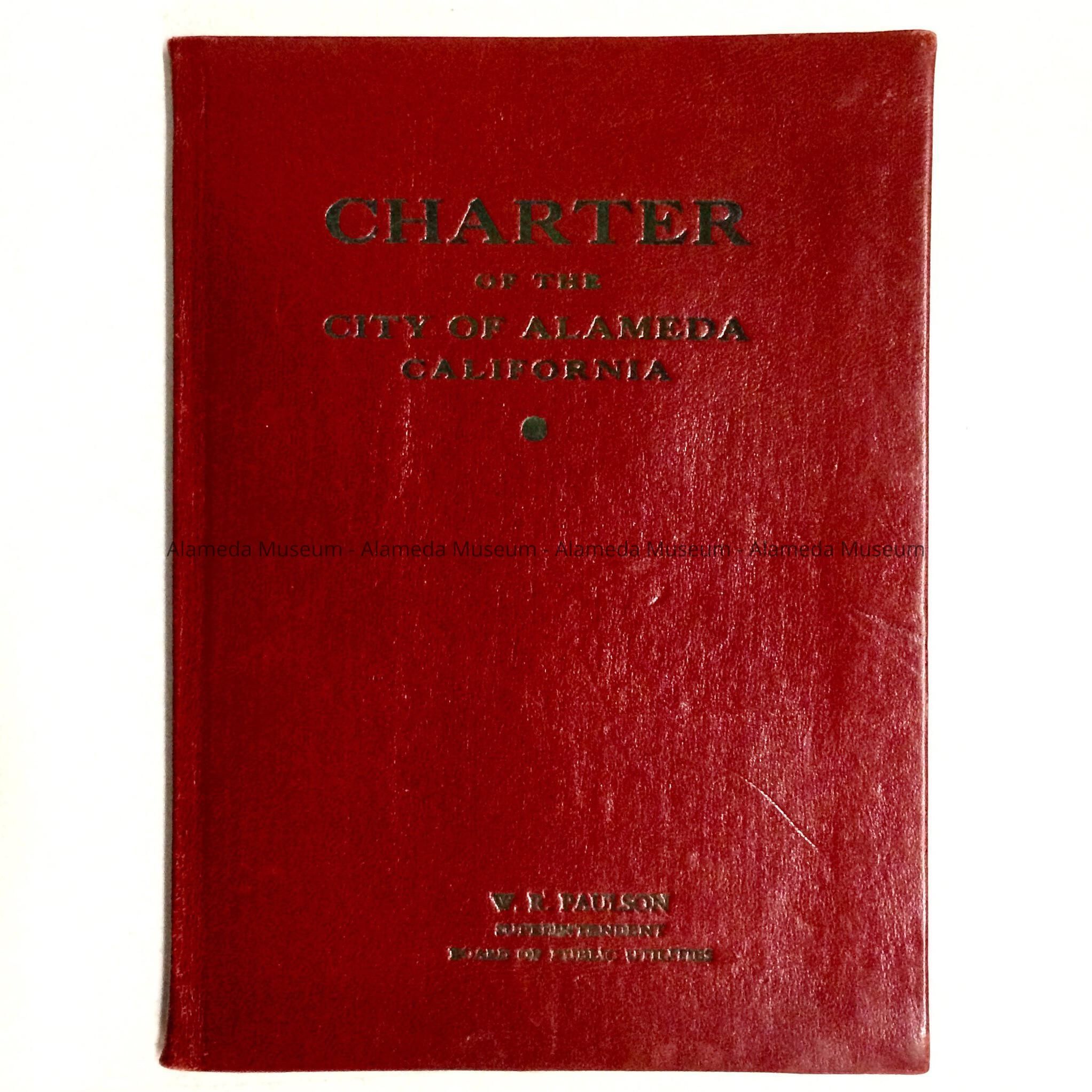 Bound Charter of the City of Alameda adopted 1-9-17, amended 6-27-33. This particular copy belonged to W. R. Paulson, Supt.