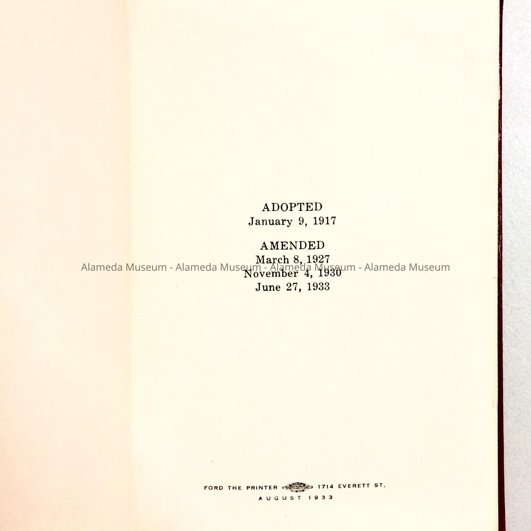 Charter of the City of Alameda, 1917, amended 1933, of W. R. PaulsonEntry/Object ID