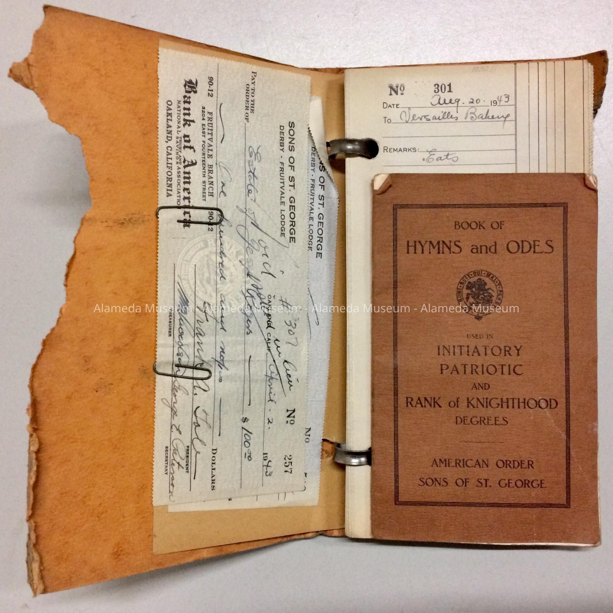 A. CHECK STUBS FOR EXPENSES, ETC., INCURRED BY THE SONS OF SAINT GEORGE LODGE --- ORIGINALLY LOCATED IN OAKLAND AND LATER MOVED TO ALAMEDA, CA.