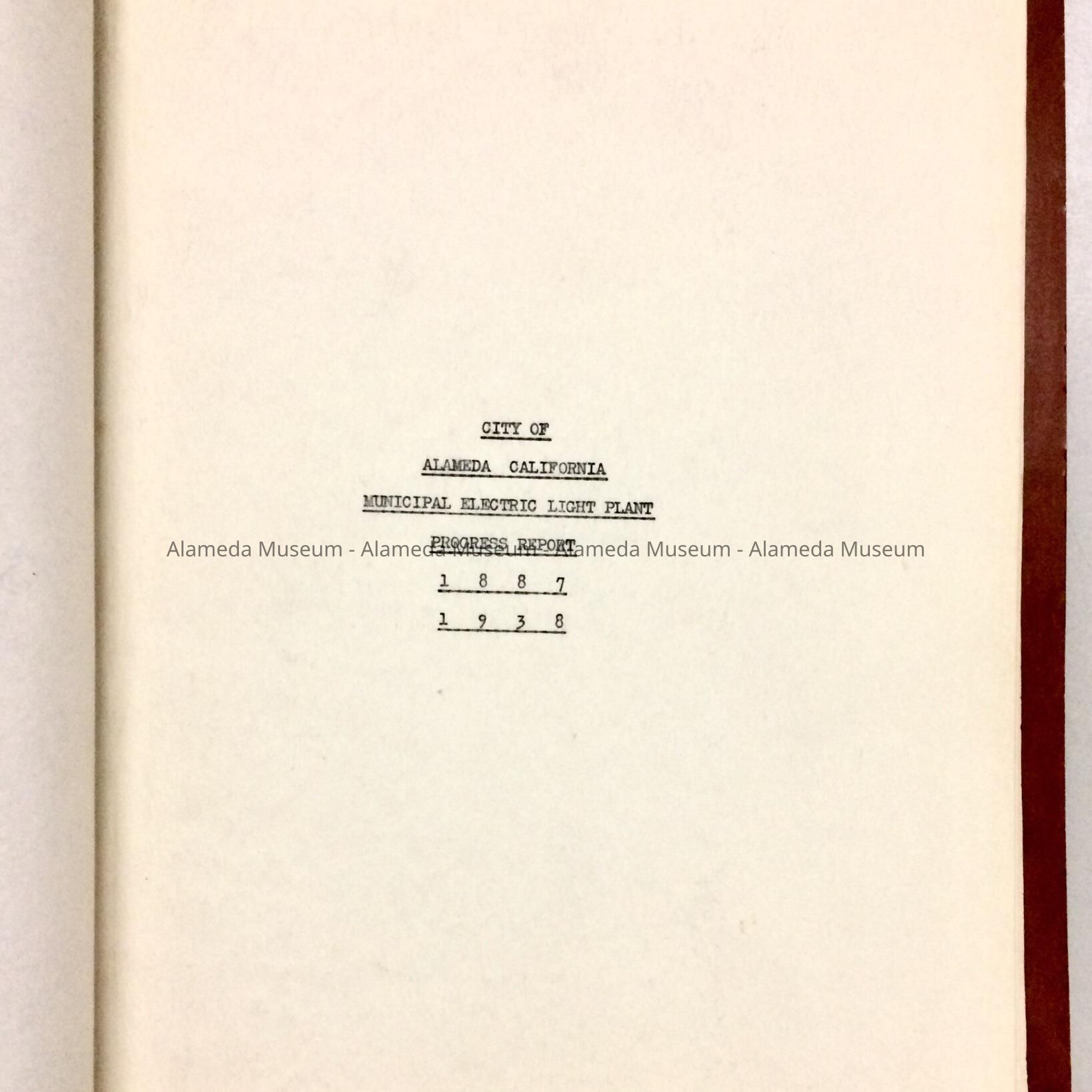 History of Object: History of the Alameda Municipal Electric Light Plant 1886 to 1938, compiled by the W.P.A. The following information contained in each volume: